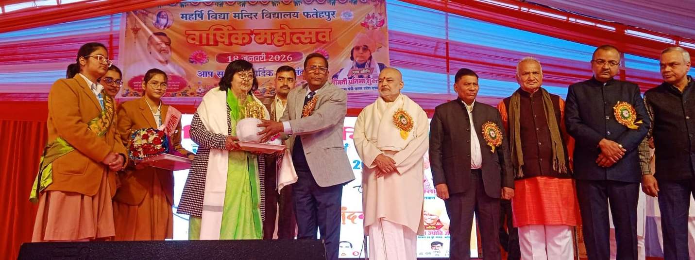 FATEHPUR NEWS: नगर स्थित महर्षि विद्या मंदिर सीनियर सेकेंड्री स्कूल में वार्षिकोत्सव को ज्ञान युग दिवस के रूप में हर्षोल्लास के साथ मनाया गया। कार्यक्रम की शुरुआत महर्षि विद्या मंदिर समूह के अध्यक्ष एवं विश्व शांति आंदोलन के अध्यक्ष ब्रह्मचारी डॉ. गिरीश द्वारा दीप प्रज्वलन और गुरु पूजन के साथ की गई। कार्यक्रम में उत्तर प्रदेश सरकार की राज्यमंत्री प्रतिमा शुक्ला मुख्य अतिथि के रूप में उपस्थित रहीं। विद्यालय प्रबंधन की ओर से उनका पुष्पगुच्छ, नारिकेल फल एवं अंगवस्त्र देकर स्वागत किया गया। पूर्व सांसद एवं केंद्रीय मंत्री निरंजन ज्योति को भी अंगवस्त्र, पुष्पगुच्छ, स्मृति चिन्ह एवं तुलसी का पौधा भेंट कर सम्मानित किया गया। इस अवसर पर निवर्तमान विधायक विक्रम सिंह, नगर पालिका अध्यक्ष राजकुमार मौर्य, निवर्तमान विधायक बिंदकी करण सिंह पटेल, ब्लॉक प्रमुख अमित तिवारी, विधायक अयाह शाह विकास गुप्ता, भाजपा जिलाध्यक्ष अन्नू श्रीवास्तव, विधायक जहानाबाद राजेंद्र पटेल, एडिशनल डायरेक्टर यतीश सक्सेना सहित अन्य गणमान्य अतिथियों को भी सम्मानित किया गया। कार्यक्रम में विद्यार्थियों द्वारा देशभक्ति एवं सांस्कृतिक प्रस्तुतियां दी गईं। बच्चों ने ऑपरेशन सिंदूर पर आधारित मंचन प्रस्तुत किया। इसके साथ ही कथक, शास्त्रीय गीत, वैदिक नृत्य, विष्णु अवतार, राधा-कृष्ण नृत्य, शिव तांडव, कजरी, छठ पूजा, मराठी लोक नृत्य और होली नृत्य की प्रस्तुति दी, जिसे दर्शकों ने सराहा। हिंदी नाटक के माध्यम से फतेहपुर की एक झांकी भी प्रस्तुत की गई। मुख्य अतिथि राज्यमंत्री प्रतिमा शुक्ला ने कहा कि बच्चों को माता-पिता और गुरुजनों का सम्मान करना चाहिए। उन्होंने कहा कि मानवता सबसे बड़ा धर्म है और अभिभावकों को बच्चों पर समय देना चाहिए। उन्होंने विद्यार्थियों को स्वामी विवेकानंद से प्रेरणा लेने की सलाह दी। महर्षि विद्या मंदिर विद्यालय समूह के अध्यक्ष ब्रह्मचारी डॉ. गिरीश ने कहा कि भारत अनादिकाल से विश्व गुरु रहा है और वैदिक परंपरा के माध्यम से मानव कल्याण का मार्ग दिखाता रहा है। उन्होंने विद्यार्थियों से वैश्विक नेतृत्व के लिए आगे आने का आह्वान किया। इस अवसर पर महर्षि वर्ल्ड पीस एसेम्बली में शामिल छात्राओं इजना हयात, अदिति सिंह, अर्पिता श्रीवास्तव और गुड़िया सिंह को प्रमाण पत्र देकर सम्मानित किया गया। कार्यक्रम के अंत में विद्यालय के प्रधानाचार्य प्रमोद कुमार त्रिपाठी ने अतिथियों, अभिभावकों और मीडिया कर्मियों का आभार व्यक्त किया।