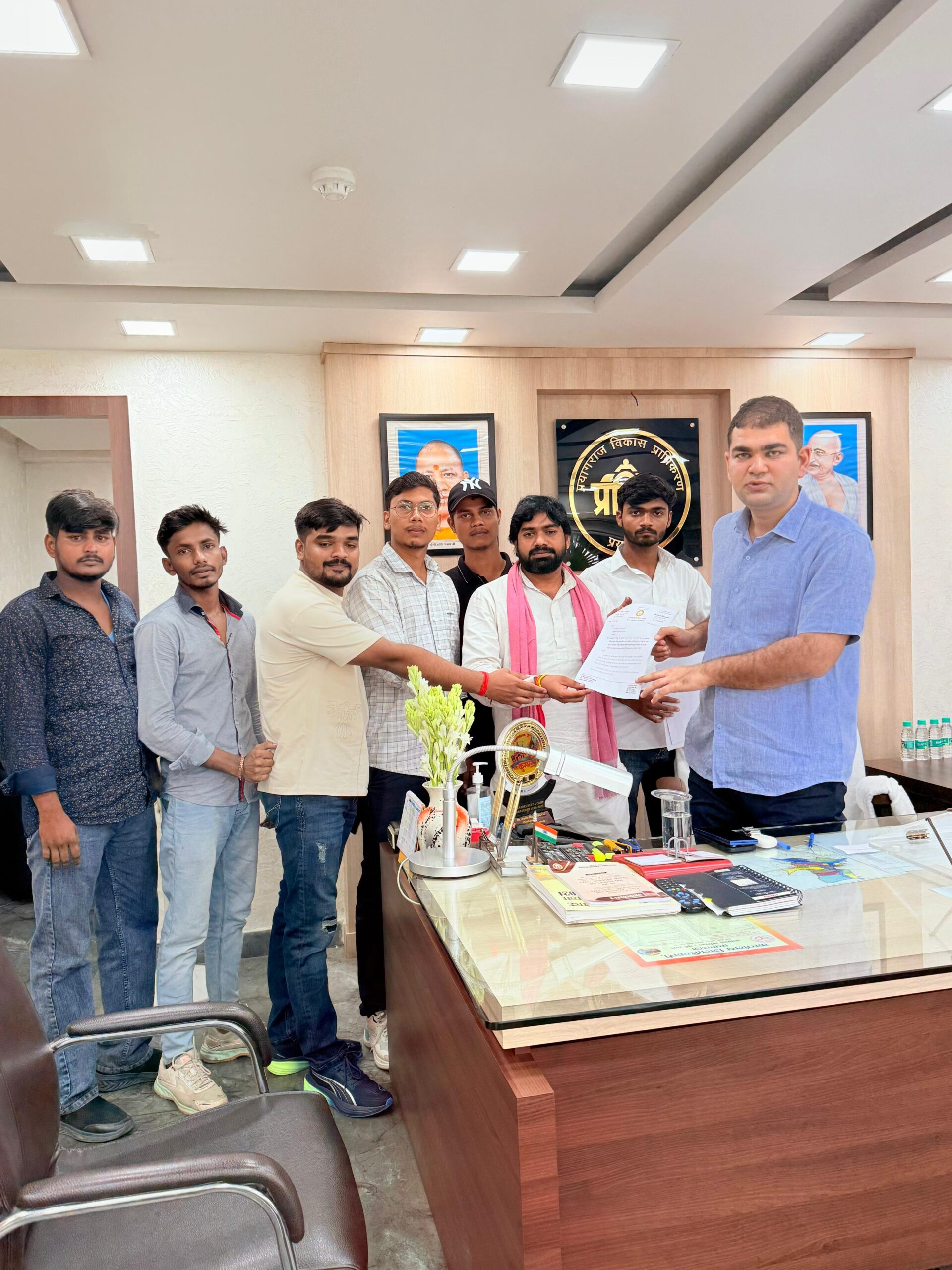 समाजवादी छात्र सभा का एक प्रतिनिधिमंडल विकास प्राधिकरण के उपाध्यक्ष को ज्ञापन सौंपते