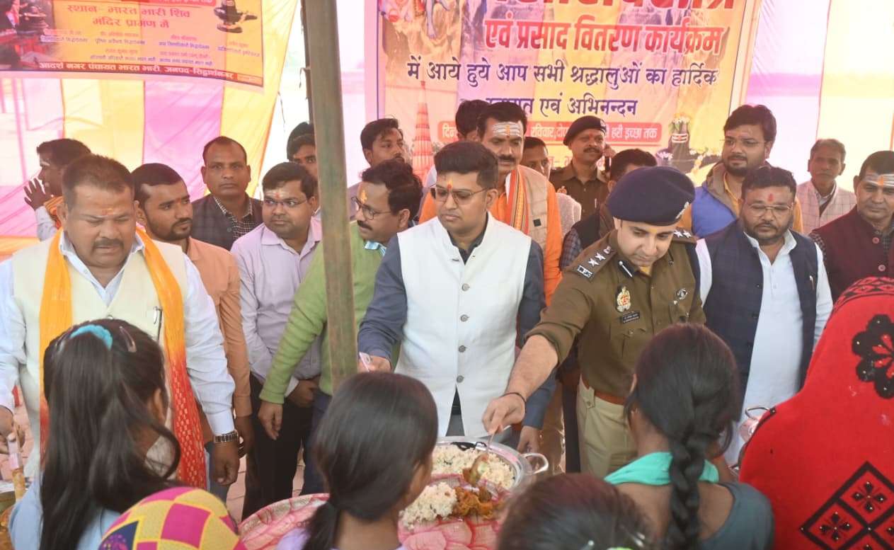 SIDHARTHNAGAR NEWS: महाशिवरात्रि के पावन अवसर पर जिलाधिकारी शिवशरणप्पा जी एन ने पुलिस अधीक्षक डॉ अभिषेक महाजन के साथ थाना डुमरियागंज क्षेत्रान्तर्गत भारतभारी शिव मंदिर का भ्रमण कर सुरक्षा व्यवस्था का निरीक्षण किया। श्रद्धालुओं की भीड़ को देखते हुए सुरक्षा, यातायात और व्यवस्थाओं की समीक्षा की गई। निरीक्षण के दौरान जिलाधिकारी ने संबंधित अधिकारियों को आवश्यक दिशा-निर्देश देते हुए पर्व के दौरान सतर्कता, समुचित बैरिकेडिंग, साफ-सफाई और भीड़ नियंत्रण की प्रभावी व्यवस्था सुनिश्चित करने को कहा। इस अवसर पर प्रभारी निरीक्षक डुमरियागंज सहित अन्य अधिकारी एवं कर्मचारी उपस्थित रहे।