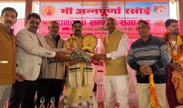 LAKHIMPUR KHERI NEWS मो० तीर्थ स्थिति नीलकण्ठ मैदान में संचालित माँ अन्नपूर्णा रसोई के दो वर्ष पूर्ण होने पर आयोजित वार्षिकोत्सव का शुभारंभ अंजनी शरण महराज,रोहितानंद महराज तथा पालिकाध्यक्ष विजय शुक्ला रिंकू ने द्वीप प्रज्वलित कर किया।तत्पश्चात रसोई संचालक गौरव ज्ञान त्रिपाठी ने रसोई संचालन की रुपरेखा रखी ।कोषाध्यक्ष आदर्श सोनी ने आय व्यय का व्यौरा पेश करते हुए बताया 17 लाख 78 हजार 572 रुपये की कुल आय हुई तथा 17 लाख 07 हजार 527 रुपये खर्च हुए। माँ अन्नपूर्णा रसोई सेवा समिति अध्यक्ष एवं चेयरमैन नगर पालिका विजय शुक्ला रिंकू ने दानदाताओं का आभार व्यक्त करते हुए कहा,” ,जरूरतमंदो की सेवा के दो वर्ष पूरे होने पर सभी दानदाताओं एवं सहयोगीजनों का आभार व्यक्त करता हूँ तथा इस ईश्वरीय कार्य में भविष्य में सहयोग के लिए आमंत्रित करता हूँ। बतौर मुख्य अतिथि अंजनी शरणजी महराज ने आशीर्वचन देते हुए कहा,” परमार्थ के कार्य में ईश्वर भी साथ देता है।जरुरतमंद को भोजन करवाना श्रेष्ठ कार्य है।कलयुग में अन्नदान प्राणदान कहा गया है। वृंदावन से आए विशिष्ट अतिथि रोहितानंद जी महराज ने कहा कि,” भजन के विविध रुप है- नरसेवा, स्वध्याय, गुरु आज्ञापालन,संनिधि। गरीबों, असहायों एवं जरुरतमंदों की सेवा ही सच्चा भजन है। विशेष शोशल मीडिया के माध्यम से मेलबर्न आष्ट्रेलिया में कार्य कर रही स्वाति शर्मा ने रसोई में दान किया ।वह मूलतः पलिया खीरी की निवासी हैं। सभी दानदाताओं को प्रशस्तिपत्र देकर सम्मानित किया गया। इस अवसर पर माँ अन्नपूर्णा रसोई सेवा समिति महामंत्री समाजसेवी सत्यप्रकाश अग्रवाल,उपाध्यक्ष आनंद त्रिवेदी ,मंत्री विकास मिश्रा , मंत्री दिनेश मिश्रा, अविनाश गुप्ता,समाजसेवी केशव अग्रवाल, भाजपा नेता विश्वनाथ सिंह, के के गुप्ता,श्याममूर्ति शुक्ला, शिवकुमार बाजपेयी सहित अनेक गणमान्य नागरिक मौजूद रहे।