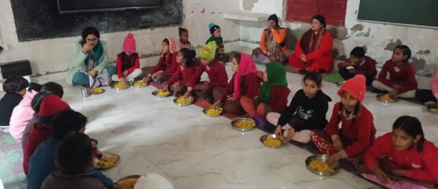 मिड डे मिल की गुणवत्ता चेक करने के लिये दो विद्यालयों का औचक निरीक्षण