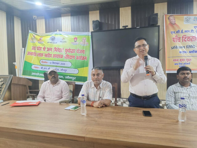 JAUNPUR NEWS: कृषि विभाग द्वारा उत्तर प्रदेश मिलेट्स पुनरोद्धार योजना के तहत शुक्रवार को शाहगंज स्थित बीआरसी सभागार में स्कूल शिक्षकों के लिए विशेष प्रशिक्षण कार्यक्रम आयोजित हुआ। उद्देश्य था शिक्षकों को श्री अन्न (मोटे अनाज) के महत्व, पोषण व स्वास्थ्य लाभों से अवगत कराना ताकि वे विद्यार्थियों व अभिभावकों को जागरूक कर सकें। उप परियोजना निदेशक आत्मा डॉ. रमेश चंद्र यादव ने बताया कि ज्वार, बाजरा, रागी, कोदो, सावा, मक्का जैसे अनाज स्वास्थ्यवर्धक हैं और किसानों की आमदनी बढ़ाने में सहायक हैं। इन्हें अब ष्श्री अन्नष् के नाम से प्रचारित किया जा रहा है तथा मिड-डे मील में शामिल करने की योजना है। खण्ड शिक्षा अधिकारी बसंत कुमार शुक्ल ने कहा कि विद्यालय भोजन में श्री अन्न को शामिल करने से बच्चों का पोषण स्तर बेहतर होगा और अभियान को गति मिलेगी।
