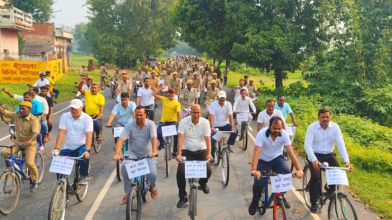 BHADOHI NEWS: राष्ट्रीय खेल दिवस के अवसर पर मेगा साइक्लिंग अभियान का भव्य आयोजन किया गया। इस अभियान में हजारों लोगों ने उत्साहपूर्वक भाग लिया और साइकिल चलाकर स्वास्थ्य और पर्यावरण के प्रति जागरूकता फैलाई। अपर जिलाधिकारी कुंवर वीरेंद्र मौर्य और मुख्य विकास अधिकारी बाल गोविंद शुक्ल ने इस अभियान का शुभारंभ किया और स्वयं भी साइकिल चलाकर लोगों को प्रेरित किया। इस मेगा साइक्लिंग अभियान में युवा कल्याण विभाग, पुलिस विभाग, और स्थानीय नागरिकों ने बड़े उत्साह के साथ भाग लिया। साइकिल रैली कलेक्ट्रेट गेट से प्रारंभ होकर लखनऊ तिराहा, दुर्गागंज, त्रिमुहानी और ज्ञानपुर कस्बे से होते हुए पुलिस लाइन जीआईसी मैदान में संपन्न हुई। इस आयोजन का उद्देश्य लोगों में स्वास्थ्य, फिटनेस और पर्यावरण संरक्षण के प्रति जागरूकता उत्पन्न करना था। कार्यक्रम में सीएमओ डॉ. संतोष चक, डीबीडीओ ज्ञान प्रकाश, जिला युवा कल्याण अधिकारी दिनेश कुमार त्रिपाठी, बीएसए विकास चौधरी और अन्य गणमान्य व्यक्ति उपस्थित रहे। साइक्लिंग क्लब के राष्ट्रीय अध्यक्ष अताउल अंसारी ने भी अपनी टीम के साथ इस कार्यक्रम में सक्रिय भूमिका निभाई। इस मेगा साइक्लिंग अभियान की सफलता ने दिखाया कि जब लोग एक साथ आते हैं तो वे समाज में सकारात्मक परिवर्तन ला सकते हैं। इस आयोजन ने न केवल स्वास्थ्य और पर्यावरण के प्रति जागरूकता फैलाई बल्कि लोगों को साइकिल चलाने के लिए भी प्रेरित किया।