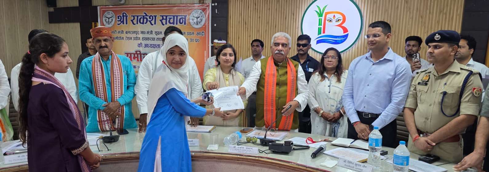 BALRAMPUR NEWS: (कमाल खान) सोमवार को माध्यमिक शिक्षा परिषद, उत्तर प्रदेश प्रयागराज द्वारा आयोजित वर्ष 2026 की हाईस्कूल एवं इण्टरमीडिएट परीक्षा के मेधावी छात्र-छात्राओं को कलेक्ट्रेट में माननीय प्रभारी मंत्री राकेश सचान (मंत्री सूक्ष्म, लघु एवं मध्यम उद्यम, खादी एवं ग्रामोद्योग) द्वारा मेडल पहनाकर एवं प्रमाण पत्र प्रदान कर सम्मानित किया गया।