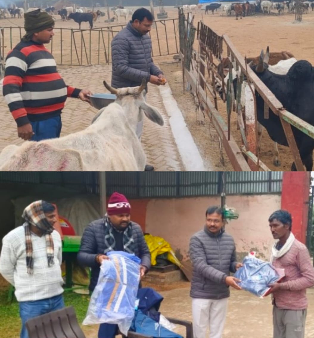 LAKHIMPUR KHERI NEWS: रविवार को नगर पालिका ईओ संजय कुमार नगर पालिका की टीम के साथ मैतहा, खंबारखेड़ा स्थित अस्थायी गौशाला का निरीक्षण करने पहुंचे। निरीक्षण के दौरान उन्होंने गौवंश को चारा खिलाया तथा गौशाला में कार्यरत मजदूरों को सर्दी से बचाव के लिए जैकेट वितरित कीं। इस अवसर पर नगर पालिका ईओ ने गौशाला की व्यवस्थाओं का बारीकी से जायजा लिया और वहां उपलब्ध सुविधाओं की समीक्षा की। उन्होंने गौशाला की देखरेख से जुड़े सभी जिम्मेदारों को निर्देश दिए कि गौवंश के लिए समय से चारा-पानी एवं अन्य आवश्यक व्यवस्थाएं सुनिश्चित की जाएं, ताकि सर्दी के मौसम में किसी भी प्रकार की परेशानी न हो।
