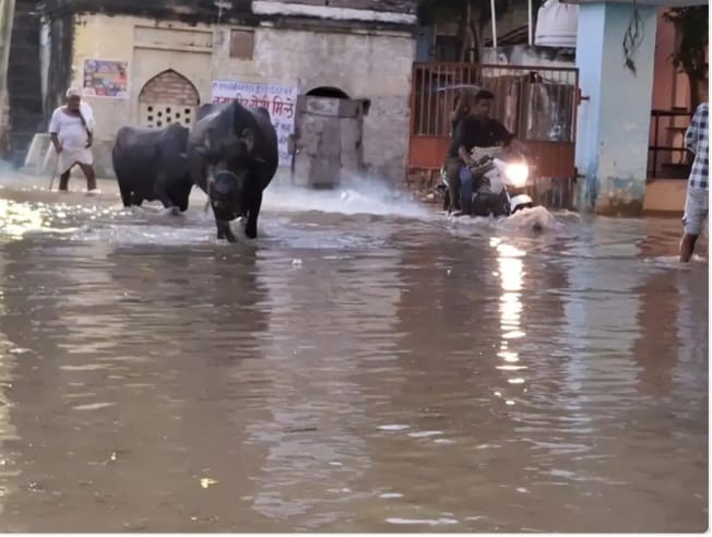ETAWA NEWS: यमुना नदी एक बार फिर विकराल रूप धारण करती नजर आ रही है। शुक्रवार देर रात से लेकर शनिवार सुबह तक नदी के जलस्तर में तेजी से बढ़ोतरी दर्ज की गई। वर्तमान में यमुना का जलस्तर 121.62 मीटर तक पहुंच गया है, जो चेतावनी बिंदु 120.92 मीटर को पार कर चुका है और खतरे के बिंदु 121.92 मीटर के बेहद करीब है। लगातार बढ़ता पानी लोगों की चिंता और प्रशासन की चुनौतियों को बढ़ा रहा है। स्थानीय निवासी राकेश का कहना है कि सुबह से जलस्तर तेजी से बढ़ रहा है लेकिन अब तक प्रशासन की ओर से कोई ठोस राहत नहीं पहुंची है। इटावा के कई अन्य हिस्सों में भी यमुना का पानी घरों, गलियों और दुकानों तक घुस चुका है। खेतों से लेकर गलियों तक सबकुछ जलमग्न हो गया है। गांवों में लोग अपने घरों की छतों पर शरण लेने को मजबूर हैं। सड़कों पर कीचड़ भर गया है और आवाजाही पूरी तरह ठप हो गई है। सबसे ज्यादा प्रभाव यमुना घाट क्षेत्र में देखा जा रहा है, जहां अंतिम संस्कार के लिए जाने वाला मुख्य मार्ग पूरी तरह जलमग्न है। स्थानीय लोगों के मुताबिक लगभग पांच फीट तक पानी भरने से शव यात्रा ले जाना संभव नहीं रहा, जिसके चलते परिजन वैकल्पिक और लंबा रास्ता अपनाने को मजबूर हैं। आपदा प्रबंधन अधिकारी अवनीश दुबे ने बताया कि राहत एवं बचाव कार्यों की तैयारी पूरी कर ली गई है। संवेदनशील इलाकों में नावें तैनात कर दी गई हैं और निगरानी बढ़ा दी गई है। हालांकि, स्थानीय लोगों का कहना है कि जमीनी स्तर पर अभी तक कोई ठोस कार्रवाई नजर नहीं आ रही है। हालात ऐसे हैं कि जनजीवन पूरी तरह प्रभावित है और लोगों में दहशत का माहौल है। लगातार बढ़ते पानी को देखते हुए प्रशासन के सामने बड़ी चुनौती खड़ी हो गई है