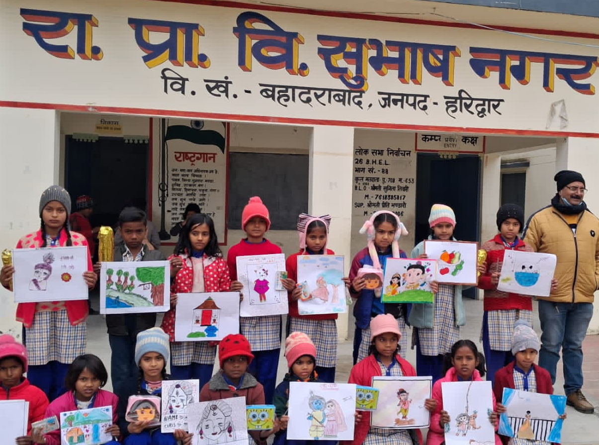 HARIDWAR NEWS: (राजकुमार केसरवानी) शैक्षिक उन्नयन श्रृंखला के तहत नेशनलिस्ट यूनियन ऑफ जर्नलिस्ट्स (NUJ Uttarakhand) की हरिद्वार जनपद इकाई ने राजकीय विद्यालयों में पढ़ने वाले  विद्यार्थियों के लिए आज सुभाषनगर स्थित राजकीय प्राथमिक विद्यालय में प्रकृति चित्रण पर  कला प्रतियोगिता का आयोजन किया जिसमें बड़ी संख्या में विद्यार्थियों ने  प्रतिभाग किया. प्रतियोगिता के उपरांत  सर्वश्रेष्ठ कलाकृति बनाने वाले विद्यार्थियों को पुरस्कृत कर सम्मानित किया. गया. जिसमें पांचवी कक्षा के वर्ग में  कु. महिमा ने प्रथम, पल्लवी ने द्वितीय और अंजलि ने तृतीय स्थान प्राप्त  किया.  कक्षा  एक से  पांच तक  के  अन्य  वर्गों में रौनक, राजवीर, राधा, ममता, रिंकी, आकृति, गीता, आंचल वंदना और अर्चना ने भी सुन्दर चित्र बना कर सांत्वना पुरस्कार प्राप्त किये. प्रतियोगिता के  दौरान छोटे-छोटे बच्चों में कला व प्रतिभा का अद्भुत संगम देखने को मिला। इस अवसर पर यूनियन के मार्गदर्शक एवं संरक्षक त्रिलोक चन्द्र भट्ट ने कहा कि किसी भी बच्चे की प्रतिभा को कम नहीं आंका जाना चाहिए। इन बच्चों में भविष्य के कलाकार छिपे हुए हैं। जिन्हें मिट्टी के घड़ों की तरह संवारने का काम इनके शिक्षक बखूबी कर रहे हैं। कार्यक्रम में यूनियन की जिलाध्यक्ष सुदेश आर्या, महासचिव मुकेश कुमार सूर्या, सूर्या सिंह राणा, भगवती प्रसाद गोयल, गणेश भट्ट, प्रभाष भटनागर आदि ने भी अपने  विचार रखे. गौरतलब है कि नेशनलिस्ट यूनियन आफ जर्नएलिस्ट्स  (NUJ Uttarakhand) विद्यार्थियों की प्रतिभा विकास के लिए विगत कई वर्षों से चित्रकला, सामान्य ज्ञान और समसामयिक विषयों पर नियमित रूप से इस तरह की प्रतियोगिताएं आयोजित करवा रही है. इस अवसर पर विद्यालय के प्रधानाध्यापक राजकमल मल्होत्रा, सहायक अध्यापक  जगदंबे रानी, नीलम नौटियाल, गीता नेगी, और सुरभि नेगी आदि भी उपस्थित रहे.