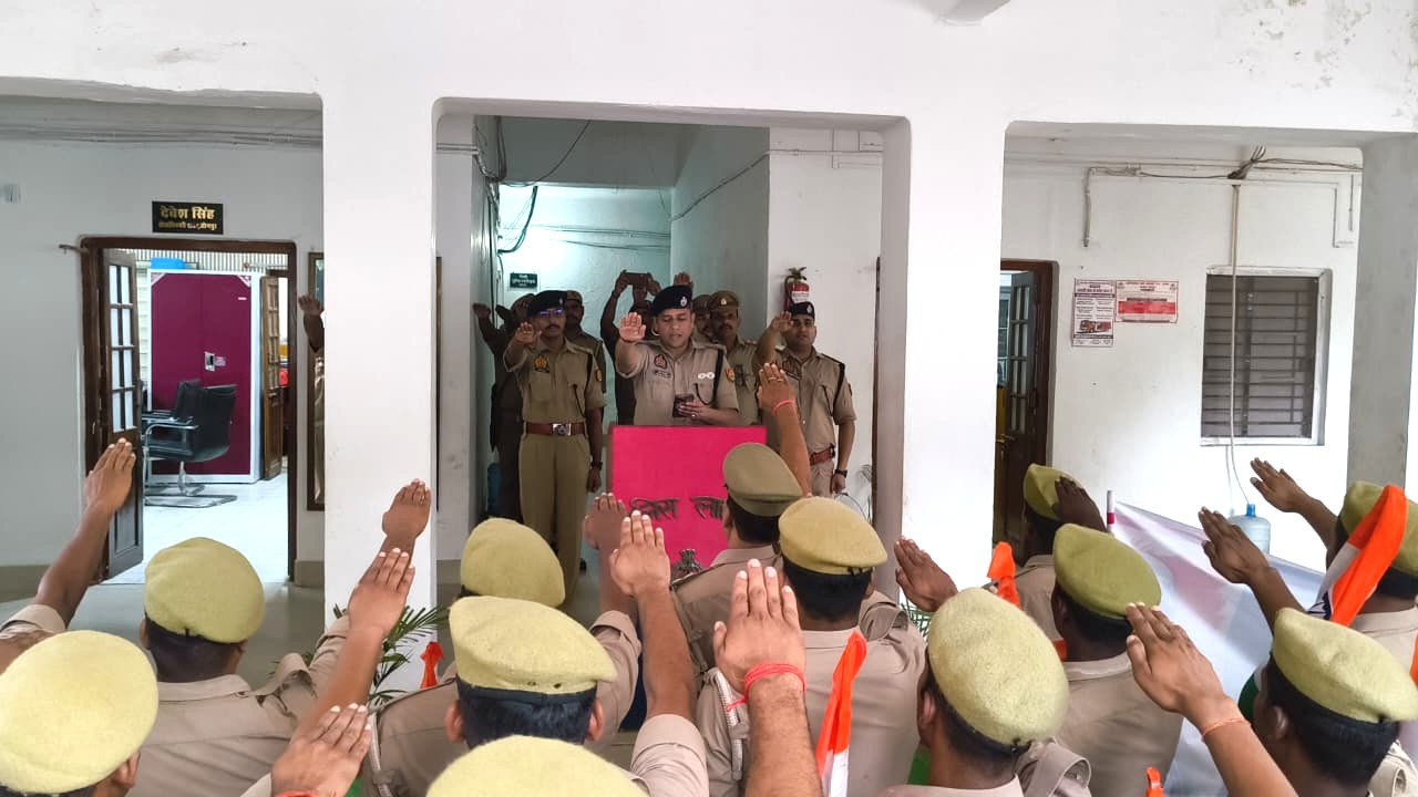 JAUNPUR NEWS: पुलिस कार्यालय जौनपुर में पुलिस अधीक्षक डॉ. कौस्तुंभ के नेतृत्व में शपथ ग्रहण समारोह आयोजित किया गया। इस अवसर पर पुलिस अधीक्षक महोदय ने सभी पुलिसकर्मियों को राष्ट्र की एकता, अखंडता और सुरक्षा बनाए रखने की शपथ दिलाई। उन्होंने कहा कि देश की एकता और अखंडता को बनाए रखना हर नागरिक का कर्तव्य है, विशेषकर पुलिस बल का दायित्व इससे और भी अधिक है। उन्होंने सभी कर्मियों से संवेदनशीलता, अनुशासन और पेशेवर ईमानदारी के साथ अपने दायित्वों का निर्वहन करने का आह्वान किया। शपथ ग्रहण समारोह में अपर पुलिस अधीक्षक नगर श्री आयुष श्रीवास्तव, अपर पुलिस अधीक्षक ग्रामीण श्री आतिश कुमार सिंह, सीओ नगर श्री गोल्डी गुप्ता सहित अन्य वरिष्ठ अधिकारी एवं बड़ी संख्या में पुलिसकर्मी उपस्थित रहे. सभी ने राष्ट्र की सेवा, सुरक्षा और अखंडता के प्रति समर्पित रहने का संकल्प दोहराया।