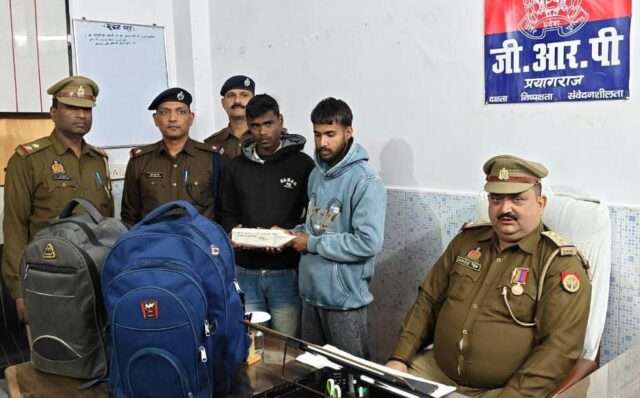 PRAYAGRAJ NEWS: मंगलवार को ऑपरेशन सतर्क के अंतर्गत रेलवे परिसर को अपराधमुक्त एवं सुरक्षित बनाए रखने के उद्देश्य से रेलवे सुरक्षा बल एवं राजकीय रेलवे पुलिस प्रयागराज द्वारा संयुक्त रूप से निरंतर सघन अभियान चलाया जा रहा है। मंगलवार को प्रयागराज जंक्शन रेलवे स्टेशन पर अवैध अंग्रेजी शराब की तस्करी के प्रयास को विफल करते हुए दो अभियुक्तों को रेलवे पुलिस ने गिरफ्तार कर लिया। संयुक्त कार्रवाई रेलवे सुरक्षा बल प्रयागराज के निरीक्षक अमित कुमार मीणा एवं राजकीय रेलवे पुलिस प्रयागराज के निरीक्षक अकलेश सिंह के कुशल निर्देशन में स्टेशन परिसर में गश्त एवं सघन चेकिंग के दौरान की गई । चेकिंग के समय दो व्यक्ति संदिग्ध अवस्था में स्टेशन परिसर में घूमते हुए दिखें। जब पुलिस ने सुरक्षा की दृष्टि से दोनों को रोककर पूछताछ की तो अभियुक्तों ने कोई संतोषजनक उत्तर नहीं दे पाए। पुलिस को शक हुआ कड़ी पूछताछ की पहचान के दौरान दोनों व्यक्तियों ने अपना नाम अजय कुमार 22 वर्ष एवं आकाश कुमार 22 वर्ष निवासी गोविंदपुर नया टोला थाना फतुहा,जिला पटना (बिहार) बताया गया। तलाशी के दौरान अभियुक्तों के कब्जे से स्लेटी काले रंग के एक बैग में रॉयल स्टैग अंग्रेजी शराब की 19 बोतलें प्रत्येक 750 एमएल तथा ₹120/- नकद बरामद किया गया। अभियुक्त आकाश कुमार के कब्जे से नीले रंग के बैग में रॉयल स्टैग अंग्रेजी शराब की 18 बोतलें (प्रत्येक 750 एमएल) तथा ₹210/- नकद बरामद हुए। दोनों अभियुक्तों से 37 बोतल अवैध अंग्रेजी शराब बरामद की गई जिसकी अनुमानित कीमत ₹ 60,000/- लगभग बताई जा रही है। पुलिस द्वारा पूछताछ में यह स्पष्ट हुआ कि अभियुक्त अवैध रूप से शराब की तस्करी कर उसे एक स्थान से दूसरे स्थान तक ले जाने का प्रयास कर रहे थे। रेलवे पुलिस दोनों अभियुक्तों के विरुद्ध थाना राजकीय रेलवे पुलिस प्रयागराज पर मुकदमा अपराध पंजीकृत कर वैधानिक कार्यवाही की गई। इस सफल संयुक्त कार्रवाई में निरीक्षक रेलवे सुरक्षा विशेष बल,राजेश कुमार सहायक उप निरीक्षक, अतुल कुमार सिंह एवं उप निरीक्षक राजकीय रेलवे पुलिस, राजेश कुमार वर्मा मौजूद रहे।रेलवे प्रशासन बताया रेलवे पुलिस द्वारा परिसर में अपराध अवैध तस्करी एवं असामाजिक गतिविधियों के विरुद्ध आरपीएफ एवं जीआरपी की संयुक्त कार्रवाई आगे भी होती रहेगी। ताकि यात्रियों को सुरक्षित,संरक्षित एवं भयमुक्त वातावरण उपलब्ध कराया जा सके।