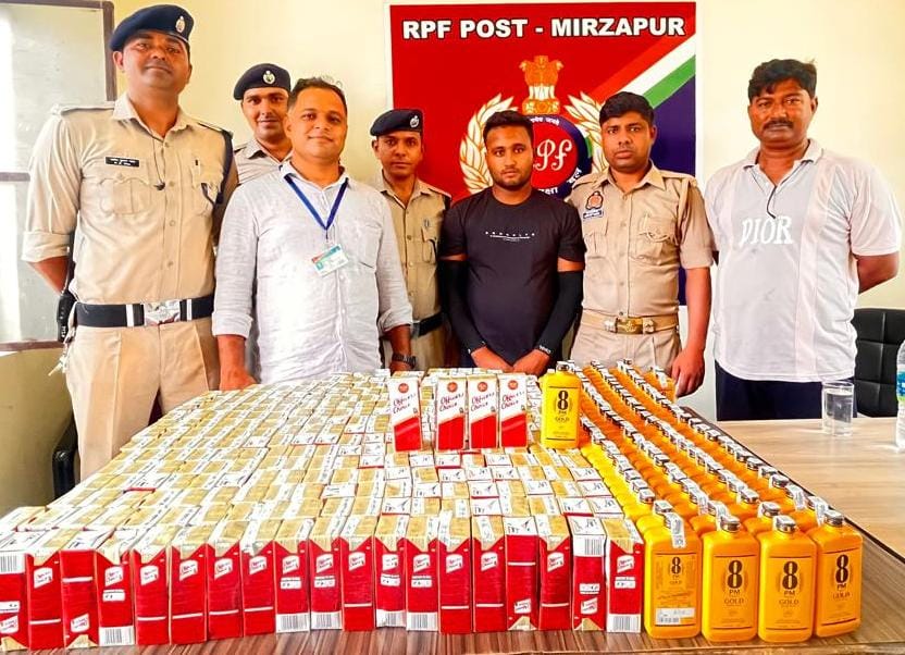 MIRZAPUR NEWS: प्रधान मुख्य सुरक्षा आयुक्त, उत्तर मध्य रेलवे, प्रयागराज रेणु पुष्कर छिब्बर के आदेश तथा वरिष्ठ मंडल सुरक्षा आयुक्त प्रयागराज विजय प्रकाश पंडित के कुशल निर्देशन में, बिहार विधानसभा चुनाव को दृष्टिगत रेलवे सुरक्षा बल द्वारा अवैध शराब, असलहा एवं नशीले पदार्थों के विरुद्ध विशेष चेकिंग अभियान चलाया जा रहा है। इसी क्रम में 8 सितम्बर 2025 को रेलवे सुरक्षा बल पोस्ट मीरजापुर के निरीक्षक चमन सिंह तोमर को सूचना प्राप्त हुई कि गाड़ी संख्या 22450 (पूर्वोत्तर संपर्क क्रांति एक्सप्रेस) में अवैध शराब बिहार ले जाई जा रही है। सूचना पर तुरंत प्रभारी निरीक्षक प्रयागराज अमित मीना एवं नियंत्रण कक्ष को अवगत कराकर उक्त गाड़ी को मिर्जापुर स्टेशन (प्लेटफार्म-1) पर रोका गया। जांच के दौरान फर्स्ट एसी कोच से एक ब्रीफकेस और तीन बैग बरामद किए गए, जिनमें बड़ी मात्रा में शराब भरी हुई थी। मौके पर पकड़े गए एक व्यक्ति ने अपना नाम भोला राजभर पुत्र बांकेलाल राजभर, उम्र 21 वर्ष, निवासी फूलपुर, जिला बनारस बताया। पूछताछ में उसने स्वीकार किया कि शराब प्रयागराज से पटना ले जाई जा रही थी। सीट संबंधी जांच में पाया गया कि टिकट संतोष नामक व्यक्ति के नाम से बुक थी। बरामदगी में 8 PM Gold (180 ml) के 109 क्वार्टर तथा Officer’s Choice टेट्रा पैक के 293 पैक पाए गए। कुल 402 नग अवैध शराब जिसकी अनुमानित कीमत ₹52,000/- आंकी गई है, जब्त की गई। उक्त कार्रवाई राजकीय रेलवे पुलिस एवं ऑपरेटिंग विभाग की उपस्थिति में संयुक्त रूप से संपादित की गई। बरामदगी को अग्रिम विधिक कार्रवाई हेतु थाना राजकीय रेलवे पुलिस मिर्जापुर को सुपुर्द कर दिया गया है, जहां मुकदमा अपराध संख्या 123/2025 धारा-60 आबकारी एक्ट के अंतर्गत पंजीकृत किया गया है।