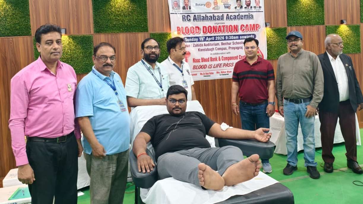 PRAYAGRAJ NEWS: रोटरी क्लब ऐकेडमीया व नाज़ ब्लड बैंक के संयुक्त तत्वाधान में करैला बाग़ स्थित बेनहर स्कूल एण्ड कालेज के जाहिदा ऑडीटोरियम में ब्लड इज़ लाइफ पास इट ऑन की थीम पर सैंतिस लोगों ने रक्तदान के महत्व को चरितार्थ किया।डोनर के उत्साहवर्धन को रोटेरियन तारिक़ खान,डॉ सैय्यद नाज़िम अहमद, डॉ नाज़ फात्मा, डॉ विश्वदीप केसरवानी,डॉ निहारीका केसरवानी डॉ आरिज़ क़ादरी,डॉ आशुतोष अग्रवाल, रिज़वान खान,असरा नवाज़,आफताब अहमद,अकबर खान,अहमद उल्ला आदि मौजूद रहे।रोटरी क्लब ऐकेडमीया व नाज़ ब्लड बैंक करैली की ओर से सभी ब्लड डोनर को गुलाब का फूल,मोमेंटो व सर्टिफिकेट देकर सम्मानित भी किया गया।वहीं रक्तदान के महत्व को भी बताया गया।