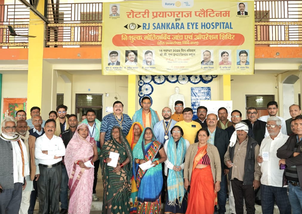 PRAYAGRAJ NEWS: रोटरी प्रयागराज प्लैटिनम के तत्वावधान में बी.बी.एस. इंटरनेशनल स्कूल, गोहरी, फाफामऊ, प्रयागराज में आयोजित निःशुल्क नेत्र जाँच एवं मोतियाबिंद ऑपरेशन शिविर अत्यंत सफलतापूर्वक सम्पन्न हुआ। शिविर में कुल 180 मरीजों की नेत्र जाँच की गई, जिनमें से 17 मरीजों का चयन मोतियाबिंद ऑपरेशन हेतु किया गया। आरजे शंकरा आई हॉस्पिटल, वाराणसी की विशेषज्ञ डॉक्टर टीम ने शिविर में पहुँचकर उच्च स्तरीय जाँच व परामर्श सेवाएँ प्रदान कीं। डॉक्टरों ने संवेदनशीलता, धैर्य और निष्ठा के साथ मरीजों को सर्वोत्तम चिकित्सा सहायता उपलब्ध कराई।रोटरी के पूर्व अध्यक्ष एवं आई-कैम्प प्रोजेक्ट हेड रोटेरियन शशांक जैन ने विद्यालय के संरक्षक डॉ. ऋषि सहाय तथा विद्यालय परिवार द्वारा किए गए उत्कृष्ट प्रबंधन और अद्वितीय समन्वय की सराहना की।