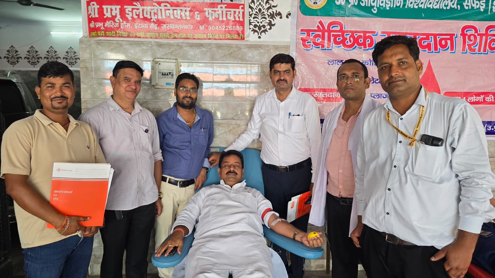 ETAWA NEWS: रविवार को नगर स्थित एक मैरिज होम में लायंस क्लब संस्था की ओर से भव्य रक्तदान शिविर एवं स्वास्थ्य परीक्षण कैंप का आयोजन किया गया। इस अवसर पर क्लब के सदस्यों एवं नगरवासियों ने बढ़-चढ़कर हिस्सा लिया। कार्यक्रम में 16 यूनिट रक्तदान किया गया, वहीं 50 से अधिक  लायंस सदस्यों का पंजीकरण भी हुआ।शिविर का संचालन आर्युविज्ञान विश्वविद्यालय सैफई ब्लड बैंक की टीम द्वारा किया गया। इस मौके पर डॉ. आदित्य शिवहरे, डॉ. अनिकेत, डॉ. राकेश मीणा, नर्सिंग अधिकारी प्रेमलाल, दीपक, देवेश, रामस्वरूप, काउंसलर प्रियंका, कपिल दुबे व सुशांत सक्रिय रूप से मौजूद रहे और रक्तदान की पूरी प्रक्रिया का सफलतापूर्वक संचालन किया। कार्यक्रम में गुरुग्राम के मेदांता अस्पताल की विशेषज्ञ टीम ने स्वास्थ्य परीक्षण किया। इसमें बीपी, शुगर, वजन, ऑर्थोपेडिक, जनरल फिजिशियन व कार्डियोलॉजी संबंधी जांचें की गईं। 150 से अधिक लोगों का स्वास्थ्य परीक्षण किया गया।डॉक्टरों ने गंभीर रोगियों को विशेष परामर्श दिया और आवश्यक इलाज कराने की सलाह भी दी।टीम ने PFT (फेफड़ों की जांच), BMD (हड्डियों की मजबूती की जांच) और ECG जैसी आधुनिक जांचें भी कीं, जिससे नगरवासियों को बड़ी राहत और सुविधा मिली। मेदांता की टीम में डॉ. मुकुल शुक्ला, रोहित शर्मा, डॉ. रिद्धिमा त्यागी, डॉ. दीपांशु वरनवाल और डॉ. अरुण गिरी एवं नगर के बाल रोग विशेषज्ञ राघव गुप्ता शामिल रहे। इन विशेषज्ञ चिकित्सकों ने लोगों को स्वास्थ्य संबंधी विभिन्न जानकारियां भी दीं।शिविर में नगर के प्रबुद्ध जनों और लायंस क्लब समिति के पदाधिकारियों ने सक्रिय रूप से भाग लिया। उपस्थित प्रमुख लोगों में राहुल गुप्ता, विनोद यादव, ठाकुर अजेन्द्र सिंह गौर, सर्वेश गुप्ता, संजीव पाठक, विनय पांडेय, सुशील कुमार बज्जे, अनूप वर्मा, लविन गुप्ता, विवेक गुप्ता, मोना, ऋषिदीप गुप्ता, अभिषेक गांगलस, अतुल बजाज, गोपाल गुप्ता, रोहित जैन समेत बड़ी संख्या में सदस्य व नगरवासी शामिल रहे। लायंस क्लब की ओर से कहा गया कि ऐसे शिविर समाज के लिए जीवनदायिनी साबित होते हैं। रक्तदान से किसी जरूरतमंद की जान बचाई जा सकती है और स्वास्थ्य जांच से लोग गंभीर बीमारियों के समय रहते निदान व इलाज करा सकते हैं।