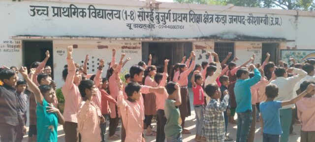 KAUSAMBI NEWS: राष्ट्रगीत वंदे मातरम के 150 साल पूरे होने पर इसे पूरे जनपद के स्कूलों में भव्य रूप से मनाए जाने के लिए शासन का निर्देश मिलने पर जनपद के स्कूलों में शिक्षकों व छात्रों ने राष्ट्रगीत का गान किया। कड़ा ब्लॉक के कंपोजिट विद्यालय सौंरई बुजुर्ग में शुक्रवार को प्रातः दस बजे स्कूल के समस्त छात्रों व शिक्षकों ने मिलकर राष्ट्रगीत का उत्साहपूर्वक गान किया और वन्देमातरम का उद्घोष किया। इस अवसर शिक्षक अजय साहू ने बताया कि आज ही के दिन 7 नवंबर 1875 को बंकिमचंद्र चटर्जी ने ने वंदे मातरम गीत की रचना की थी आज इस गीत के 150 साल पूरे हो चुके है जो हमारे लिए गौरवशाली पल है। लोगों में राष्ट्रभक्ति जगाने के लिए इसे हम सब एक उत्सव के रूप में मनाएंगे। इसका आयोजन पूरे साल भर में चार चरणों में चलाया जाएगा। पहला चरण 7 नवंबर से प्रारम्भ हुआ है।