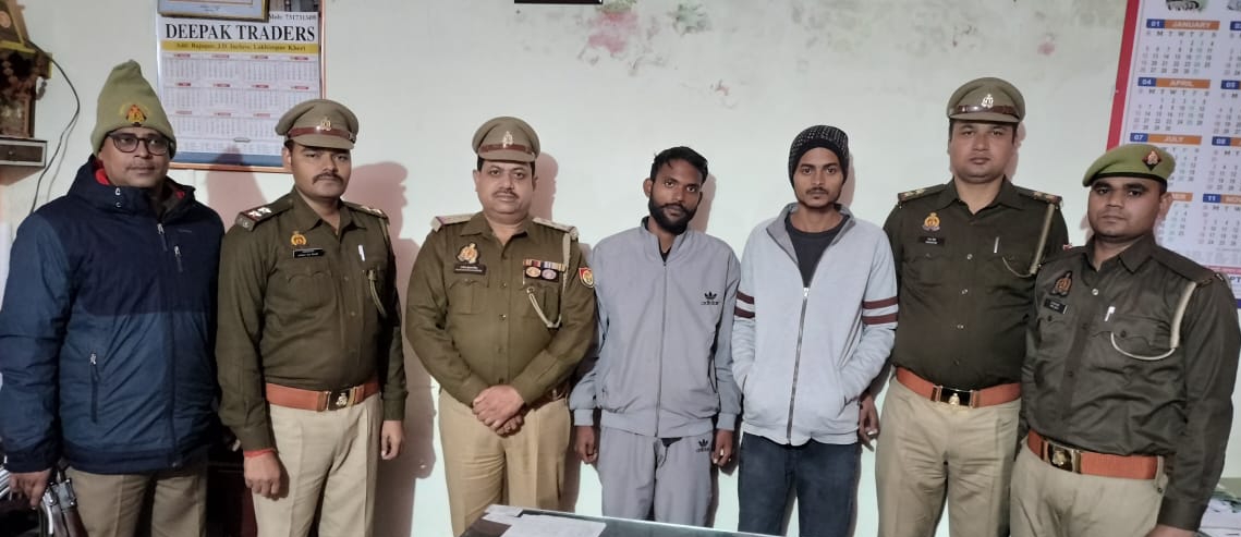LAKHIMPUR KHERI NEWS: शुक्रवार को थाना कोतवाली सदर पुलिस मु0अ0सं0 1061/2025 धारा 103(1)/61(2) बीएनएस से सम्बन्धित एक नफर वॉछित अभियुक्तगण 1. खुर्शीद उर्फ एहितसाम अली पुत्र रियासत अली उम्र 21 वर्ष निवासी नौरंगाबाद (मन्सूरी मोहल्ला) थाना कोतवाली सदर खीरी 2. अयान पुत्र साजिद खान उम्र 21 वर्ष महाराजनगर थाना कोतवाली सदर जिला खीरी को गिरफ्तार किया गया। अभियुक्त के विरूद्ध विधिक कार्यवाही की जायेगी।थाना स्थानीय पर मु0अ0सं0 1061/2025 धारा 103 (1)/61 (2) बीएनएस वादी सीबू पुत्र इकबाल निवासी ग्राम बेहननपुरवा थाना पलिया जिला खीरी की तहरीरी सूचना के आधार पर वादी के भाई अहमद जहान उर्फ आश की साजिश के तहत हत्या कर शव को फन मॉल के पीछे पटेल नगर मैदान में फेंक देने के सम्बन्ध में अभि० गण खुर्शीद, अयान आदि विरुद्ध मुकदमा पंजीकृत हुआ जिसकी विवेचना प्रभारी निरीक्षक श्री राजेश कुमार सिंह थाना कोतवाली सदर द्वारा की जा रही है विवेचना के दौरान पाया गया कि मृतक अहमद जहान का काफी समय से प्रेम प्रसंग खुर्शीद उर्फ एहितसाम अली की बहन साबिहा से चल रहा था जिससे अहमद जहान उर्फ आशू चोरी छुपे मिला करता था जिससे उसका भाई खुर्शीद उर्फ एहितसाम अली नारज था दिनांक 17.12.2025 को व अहमद जहान उर्फ आशू अभियुक्त की बहन से मिलने आया जिसे लेकर होटल दा ला ग्रेस में गया जब साबिहा व अहमद जहान होटल से बाहर आ रहे थे तो अभियुक्त खुर्शीद द्वारा दोनो को देख लिया गया व उनके पीछे लग गया जब अहमद जहान साबिहा को छोड़ने मोहल्ला नौरगाबाद पहुँचा तो वहा मोड़ पर एक चॉट के ठेले पर दोनो चाँट खाने लगे साबिहा का भाई खुर्शीद उर्फ एहितसाम अली अपने दोस्त आयन के साथ वहां पहुंचा और मृतक को यह कह कर अपने साथ बैठा लिया की तुम मेरी बहन से बात करते हो चलो बैठ कर शादी की बात करते है फिर तीनो लोग मोटर साइकिल से पटेल नगर ग्राउन्ड में चले गये खुर्शीद उर्फ एहितसाम अली ने उससे कहा की साले तुम मेरी बहन से बात करते हो मैंने तुम से कई बार मना किया था लेकिन तुम नहीं माने इतना कहकर खुर्शीद ने अपना तमंचा निकाला और लोड करने लगा यह देखकर अहमद जहान उर्फ आशु वहां से भागने लगा जिसे आयान ने पकड़ लिया और खुर्सीद ने अहमद जहान के सिने पर सटा कर तंमचे से सीधी गोली मार दी जिससे अहमद जहान की मृत्यु हो गयी और वह वहां से भाग गये। आज दिनाक 19.12.2025 को ड्रग्स निर्माणाधीन फैक्ट्री ग्राम रंगीलानगर से दोनो की गिरफ्तारी टीम द्वारा की गयी।