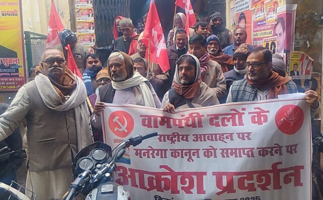 PRATAPGARH NEWS: महात्मा गांधी राष्ट्रीय रोजगार गारंटी अधिनियम 2005 जिसे संक्षेप में मनरेगा संबोधित किया जाता है को बदलकर विकसित भारत रोजगार एवं आजीविका गारंटी मिशन जो संक्षेप में वी जी राम जी के नाम से संबोधित किया जाए बिल को केंद्र की मोदी सरकार ने लोकसभा में लाने और उसे लागू करने के प्रयासों पर देश के वामपंथी दलों भारतीय कम्युनिस्ट पार्टी, भारत की कम्युनिस्ट पार्टी मार्क्सवादी, भारत की कम्युनिस्ट पार्टी मार्क्सवादी लेनिन वादी एवं फारवर्ड ब्लाक के आवाहन पर आज जिला मुख्यालय प्रतापगढ़ पर जिलाधिकारी कार्यालय पर भारतीय कम्युनिस्ट पार्टी , भारत की कम्युनिस्ट पार्टी मार्क्सवादी और यस यू सी आई communist के कार्यकर्ताओं द्वारा एक आक्रोश प्रदर्शन किया गया। आक्रोश प्रदर्शन के माध्यम से महामहिम राष्ट्रपति महोदया को जिलाधिकारी प्रतापगढ़ के माध्यम से संबोधित ज्ञापन प्रेषित किया गया ज्ञापन में मुख्य रूप से विकसित भारत रोजगार एवं आजीविका गारंटी मिशन ग्रामीण बिल को तत्काल प्रभाव से वापस लिए जाने, महात्मा गांधी राष्ट्रीय रोजगार गारंटी एक्ट 2005 मनरेगा को अधिनियम के रूप में बदस्तूर जारी रखे जाने, MANREGA में भारत सरकार और प्रांतीय सरकारों द्वारा दिए जाने वाले पुराने बजट व्यवस्था को जारी रखे जाने, खेत एवं ग्रामीण मजदूरों को वर्ष में 200 दिन काम और प्रतिदिन₹600 न्यूनतम गारंटी शुदा मजदूरी दिए जाने, खेत एवं ग्रामीण मजदूरों को 55 वर्ष की आयु पूर्ण होने पर ₹10000 प्रति माह पेंशन की व्यवस्था सुनिश्चित किए जाने, खेत और ग्रामीण मजदूरों के सामाजिक सुरक्षा की गारंटी सुनिश्चित किए जाने, आजादी के महानायक राष्ट्रपिता महात्मा गांधी के नाम पर बने एक्ट मनरेगा को समाप्त करके लाए जा रहे विकसित भारत रोजगार एवं आजीविका गारंटी मिशन ग्रामीण बिल पर रोक लगाने के साथ ही भाजपा केंद्र सरकार के द्वारा हिंदू राष्ट्र बनाने की तरफ आगे बढ़ने की साजिश पर अभिलंब रोक लगाए जाने की मांग की गयी। प्रदर्शन करने वालों में प्रमुख रूप से भारतीय कम्युनिस्ट पार्टी के जिला मंत्री राजमणि पांडे ,राज्य परिषद के सदस्य हेमंत नंदन ओझा, पूर्व जिला मंत्री रामबरन सिंह ,सहायक जिला मंत्री निर्भय प्रताप सिंह, मंत्री परिषद सदस्य आर डी यादव अशोक कुमार पाल, राजेंद्र कुमार, महाबली मौर्य ,रामस्वरूप, सुरेश चंद शर्मा, आलोक सिंह, भारत की कम्युनिस्ट पार्टी मार्क्सवादी के जिला मंत्री आशुतोष शुक्ला, मोहम्मद दानिश ,अजय कुमार पांडे, राम आधार, एस यू सी आई के प्रवीण विश्वकर्मा लल्लू रामपाल, अशोक प्रजापति, बजरंग सिंह, भगत यादव आदि प्रमुख रूप से थे। प्रदर्शनकारी मुख्य रूप से मनरेगा अधिनियम को वापस लेने को रद्द किए जाने, वामपंथी एकता जिंदाबाद, किसान मजदूर एकता जिंदाबाद, इं