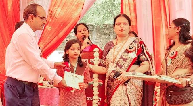 पूर्व माध्यमिक विद्यालय नई बाजार में आयोजित कार्यक्रम के दौरान बीईओ ने बच्चों में वितरित किया कार्यक्रम