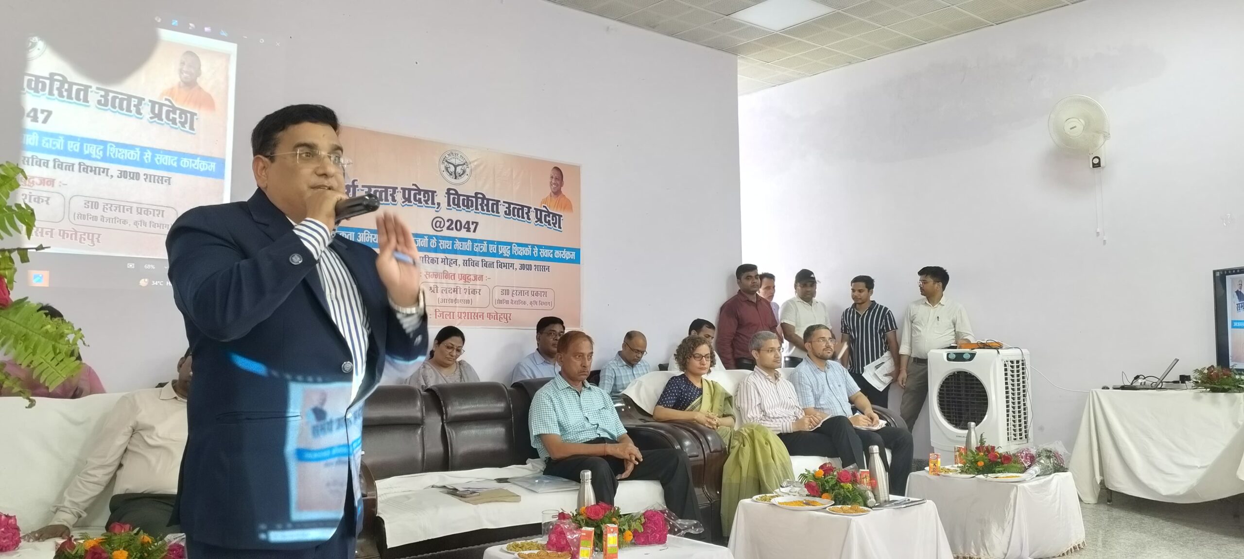 FATEHPUR NEWS: समर्थ उत्तर प्रदेश- विकसित उत्तर प्रदेश@2047 अभियान कार्यक्रम का शुभारम्भ राजकीय औद्योगिक प्रशिक्षण संस्थान (आईटीआई) फतेहपुर ऑडिटोरियम में नोडल अधिकारी व अन्य विशिष्टजनों द्वारा किया गया। इसी क्रम में विकास भवन सभागार एवं कृषि विज्ञान केन्द्र थरियांव में संवाद एवं विचार गोष्ठी का आयोजन किया गया। आईटीआई फतेहपुर में शासन द्वारा नामित नोडल अधिकारी डॉ0 सारिका मोहन सचिव वित्त विभाग, डॉ0 वीरेन्द्र बहादुर सिंह सेवानिवृत्त आईपीएस,  डा0 हरज्ञान प्रकाश सेवानिवृत्त कृषि वैज्ञानिक, लक्ष्मीशंकर वर्तमान आईइएस, जिलाधिकारी रविन्द्र सिंह, मुख्य विकास अधिकारी पवन कुमार मीना ने मां सरस्वती के चित्र पर पुष्प अर्पित एवं दीप प्रज्वलित किया। कार्यक्रम में  जिलाधिकारी रविन्द्र सिंह ने शासन द्वारा नामित नोडल अधिकारी, प्रबुद्धजनों को पौध, पुष्प गुच्छ देकर सम्मानित किया। कार्यक्रम में सूचना एवं जन संपर्क विभाग द्वारा बनाई गई लघु फिल्म विजन डॉक्यूमेंट @2047 का प्रदर्शन किया गया।