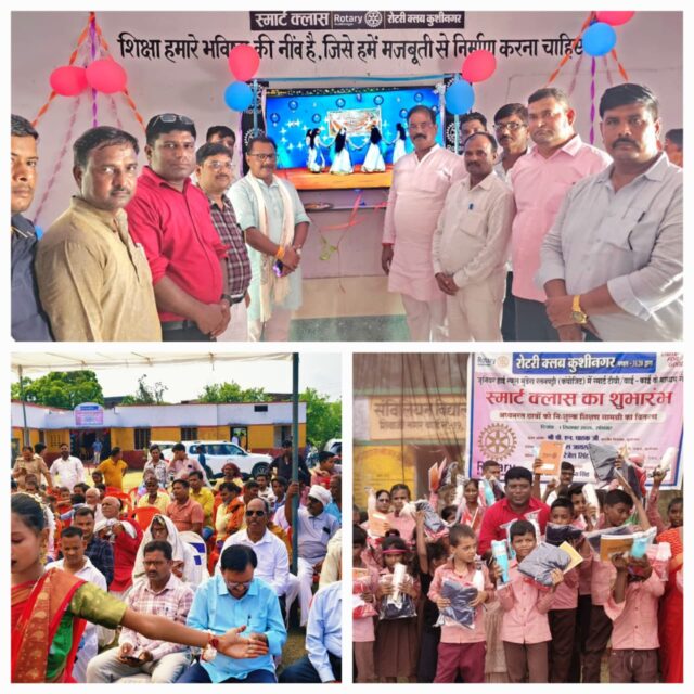 KUSHINAGAR NEWS: रोटरी क्लब कुशीनगर के सौजन्य से सोमवा को जूनियर हाई स्कूल, मुंडेरा रतनपट्टी (कंपोजिट), वार्ड नं० 19 शिवाजी नगर में एक भव्य कार्यक्रम का आयोजन किया गया।कार्यक्रम के अंतर्गत स्मार्ट टीवी और वाई-फाई के माध्यम से स्मार्ट क्लास का शुभारंभ किया गया। साथ ही अध्यनरत छात्र-छात्राओं को नि:शुल्क टी-शर्ट, लोअर, कॉपी–पेन एवं पानी की बोतल वितरित की गई। समाज में पर्यावरण संरक्षण का संदेश देने हेतु “एक पेड़ माँ के नाम” पौधारोपण कार्यक्रम भी सम्पन्न हुआ।इस अवसर पर मुख्य अतिथि विधायक पी.एन. पाठक एवं विशिष्ट अतिथि नगर पालिका परिषद कुशीनगर के अध्यक्ष प्रतिनिधि राकेश जायसवाल और वार्ड सभासद गिरिजेश सिंह ने विद्यार्थियों को शुभकामनाएँ देते हुए रोटरी क्लब की इस पहल की सराहना की।