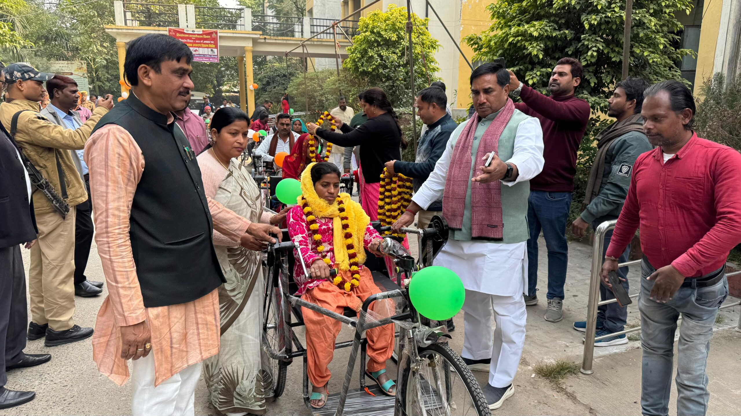 कार्यक्रम में बड़ी संख्या में दिव्यांगजन लाभार्थी उपस्थित रहे, जिन्हें व्हीलचेयर, ट्राइसाइकिल, श्रवण यंत्र, बैसाखी, कृत्रिम अंग सहित विभिन्न सहायक उपकरण उपलब्ध कराए गए। लाभार्थियों ने शासन-प्रशासन द्वारा किए जा रहे प्रयासों के प्रति आभार व्यक्त किया। इस अवसर पर मुख्य विकास अधिकारी विशाल कुमार, परियोजना निदेशक, जिला समाज कल्याण अधिकारी, दिव्यांगजन सशक्तिकरण विभाग के अधिकारी एवं कर्मचारी तथा अन्य जनप्रतिनिधि भी उपस्थित रहे।