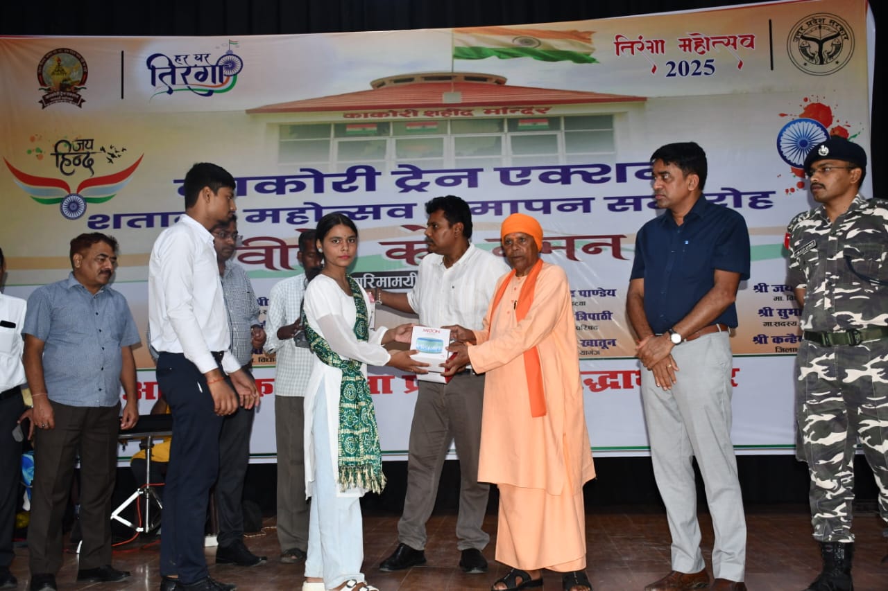 SIDHARTHNAGAR NEWS: काकोरी ट्रेन एक्शन शताब्दी महोत्सव का समापन ‘वीरों को नमन’ के भव्य समारोह के साथ हुआ। लोहिया कला भवन में आयोजित इस कार्यक्रम में कपिलवस्तु विधायक श्याम धनी राही, जिलाधिकारी डॉ. राजा गणपति आर., मुख्य विकास अधिकारी बलराम सिंह, पीडी नागेंद्र मोहन राम त्रिपाठी और जिला विकास अधिकारी सतीश सिंह ने दीप प्रज्ज्वलित कर शहीदों को श्रद्धांजलि अर्पित की। मुख्य विकास अधिकारी बलराम सिंह ने विधायक श्याम धनी राही और जिलाधिकारी डॉ. राजा गणपति आर. का गर्मजोशी से स्वागत किया। कार्यक्रम में बेसिक शिक्षा और माध्यमिक शिक्षा विभाग के छात्र-छात्राओं ने देशभक्ति की भावना से भरे सांस्कृतिक कार्यक्रम प्रस्तुत किए, जिन्होंने सभी का मन मोह लिया। पुलिस विभाग और एसएसबी के जवानों ने भी अपनी कला का प्रदर्शन कर माहौल में जोश भर दिया। ‘हर घर तिरंगा’ अभियान के तहत आयोजित की गई विभिन्न प्रतियोगिताओं के विजेताओं को भी इस अवसर पर सम्मान मिला। निबंध, भाषण, वाद-विवाद और पोस्टर प्रतियोगिता में उत्कृष्ट प्रदर्शन करने वाले छात्र-छात्राओं के साथ-साथ शानदार कार्यक्रम प्रस्तुत करने वाले एसएसबी के जवानों को भी विधायक श्याम धनी राही, जिलाधिकारी डॉ. राजा गणपति आर. और मुख्य विकास अधिकारी बलराम सिंह ने पुरस्कार देकर सम्मानित किया। इस मौके पर संस्कृति विभाग के लोक गायक बृजेश कुमार दुबे ने अपनी शानदार प्रस्तुति से पूरे कार्यक्रम में नई जान फूंक दी। कार्यक्रम का सफल संचालन नीतेश पांडेय ने किया। इस दौरान जिला विद्यालय निरीक्षक अरुण कुमार सहित विभिन्न विद्यालयों के अध्यापक और छात्र-छात्राएं बड़ी संख्या में मौजूद रहे।