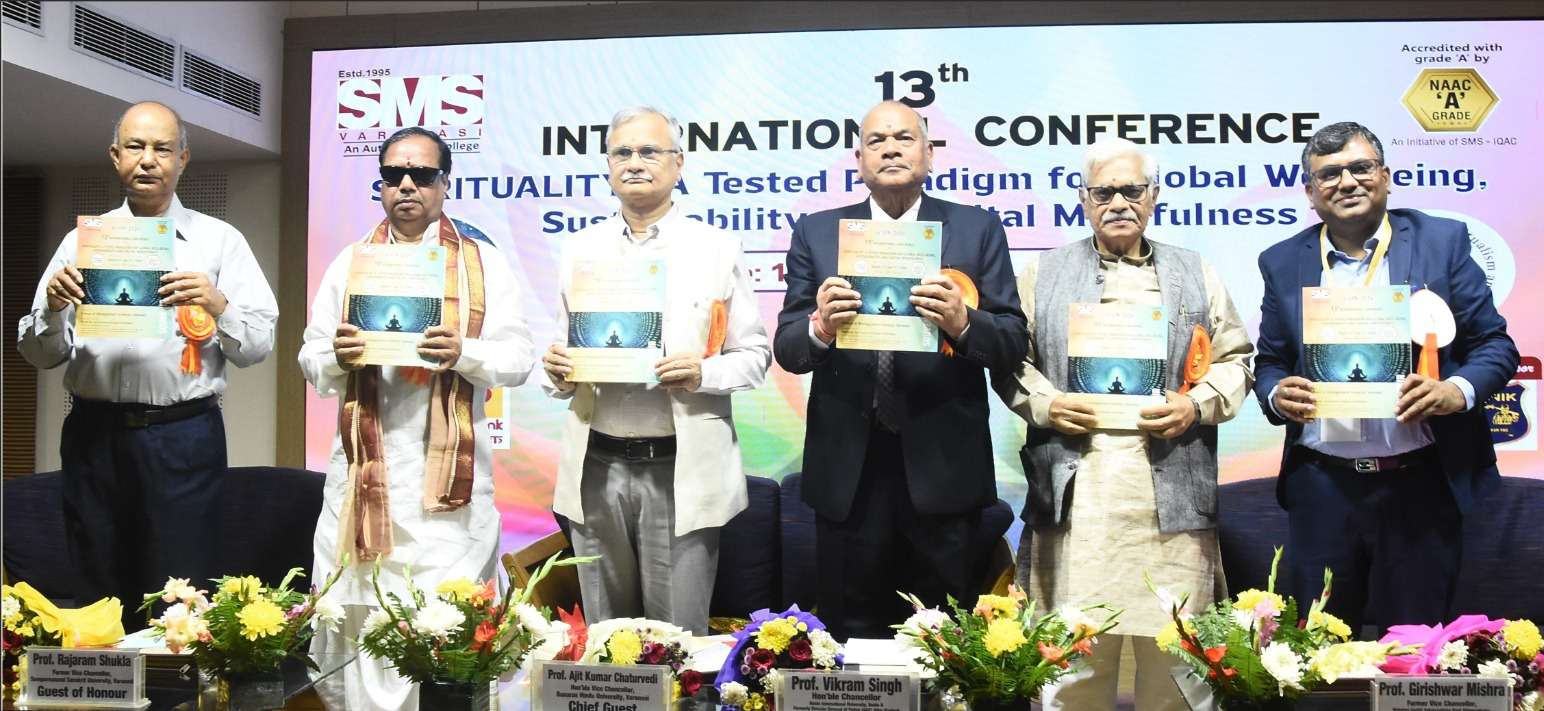 उद्घाटन सत्र के क्रम को आगे बढ़ाते हुए अतिथियों का स्वागत करते हुए एस.एम.एस. वाराणसी के निदेशक प्रो. पी. एन. झा ने कहा कि संस्थान केवल शैक्षणिक उत्कृष्टता तक सीमित नहीं है, बल्कि समाज के प्रति अपनी जिम्मेदारियों को लेकर भी सदैव सजग और प्रतिबद्ध रहा है। प्रो. झा ने यह कहा कि ऐसे अंतरराष्ट्रीय सम्मेलन ज्ञान-विमर्श और शोध के नए आयामों को समझने का महत्वपूर्ण मंच प्रदान करते हैं, जिससे परंपरागत भारतीय ज्ञान और आधुनिक वैश्विक दृष्टिकोण के बीच बेहतर समन्वय स्थापित किया जा सकता है। इस अवसर पर आध्यात्मिकता: वैश्विक कल्याण, सततता और डिजिटल सजगता के लिए एक सिद्ध प्रतिमान पर आधारित स्मारिका का भी विमोचन किया गया । इस दौरान पिछले वर्ष आयोजित बारहवें अंतरराष्ट्रीय कांफ्रेंस पर आधारित पुस्तक का भी अनवारण हुआ । उदघाटन सत्र का संचालन सह-संयोजक प्रो० पल्लवी पाठक ने व धन्यवाद ज्ञापन कॉन्फ्रेंस के संयोजक प्रो० अमिताभ पांडेय ने दिया।  दो दिवसीय अंतरराष्ट्रीय कॉन्फ्रेंस के पहले दिन अलग अलग तकनीकी सत्रों का आयोजन भी हुआ जिसमें देश-विदेश से आये लगभग 300 से अधिक प्रतिभागियों ने शोध-पत्र प्रस्तुत किया । इस अवसर पर एस०एम०एस०, वाराणसी के अधिशासी सचिव डॉ० एम० पी० सिंह, निदेशक प्रो. पी. एन. झा, कुलसचिव श्री संजय गुप्ता, प्रो० संदीप सिंह, प्रो० अविनाश चंद्र सुपकर सहित समस्त अध्यापक और कर्मचारी गण उपस्थित रहे।
