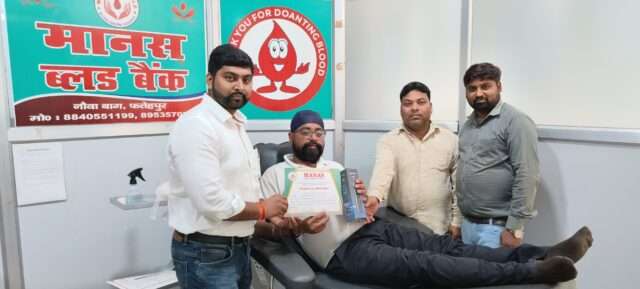 FATEHPUR NEWS: शहीदी दिवस (भारत) के अवसर पर स्वतंत्रता संग्राम के अमर बलिदानियों भगत सिंह, सुखदेव थापर एवं राजगुरु को श्रद्धांजलि अर्पित करते हुए एक रक्तदान शिविर का आयोजन किया गया। सर्व फॉर ह्यूमैनिटी फाउंडेशन व निफा के सहयोग से मानस रक्तकेन्द्र में आयोजित इस शिविर में 35 रक्तदाताओं ने रक्तदान कर मानवता की मिसाल पेश की।