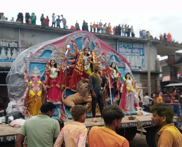 KUSHINAGAR NEWS: शारदीय नवरात्रि के समापन के बाद शुक्रवार को बाड़ीपुल के बाड़ी नदी में दुर्गा प्रतिमाओं का विसर्जन शांतिपूर्ण ढंग से संपन्न हुआ। इस दौरान भक्तों ने श्रद्धा और उल्लास के साथ माता रानी को विदाई दी। विभिन्न पूजा पंडालों से भक्तजन माता रानी की प्रतिमाओं को विसर्जन के लिए लेकर निकले। पूरे रास्ते पर “जय माता दी” के नारों, डीजे की धुन, ढोल-नगाड़ों और देवी गीतों से वातावरण भक्तिमय बना रहा। श्रद्धालु अबीर-गुलाल उड़ाते हुए नाचते- गाते विसर्जन स्थल तक पहुंचे।नवरात्र के नौ दिन तक माता रानी के विभिन्न स्वरूपों की पूजा-अर्चना और हवन-पूजन के बाद दशमी तिथि पर भक्तों ने पूरे विधि-विधान से प्रतिमाओं को विदाई दी। विसर्जन स्थल पर आरती और मंत्रोच्चार के बीच प्रतिमाओं का विसर्जन किया गया। भक्तों ने “माता रानी अगले बरस जल्दी आना” के साथ मां को विदाई दी। जगह-जगह प्रसाद वितरण की व्यवस्था की गई थी। पूरे आयोजन को लेकर पुलिस-प्रशासन पूरी तरह मुस्तैद रहा और शांति व्यवस्था बनाए रखी।थानाध्यक्ष अभिनव मिश्रा स्वयं पुलिस बल के साथ जगह-जगह भ्रमण करते रहे विसर्जन स्थल पर सुरक्षा व्यवस्था का कमान संभाले रखा वही साखोपार कानूनगो मार्कण्डेय मणि अपने लेखपाल के साथ मुस्तैद रहे। बाड़ीपुल चौराहे पर श्री श्री 108 दुर्गा पूजा समिति के अध्यक्ष अमर कुशवाहा के नेतृत्व मे बाड़ीपुल चौराहे पर मंच से सभी जगहों से आ रही मूर्ति विसर्जन का अभिवादन किया और वरीयता क्रम में पुरस्कार भी बाटा गया मुख्यातिथि नगरपालिका चेयरमैन प्रतिनिधि राकेश जायसवाल व ओमप्रकाश जायसवाल, साखोपार मंडल अध्यक्ष किन्नरेश चौबे, मीडिया प्रभारी विश्वरंजन मंडल महामंत्री शैलेन्द्र राय विजय तिवारी मौजूद रहे। संचालन मनंजय तिवारी ने किया।
