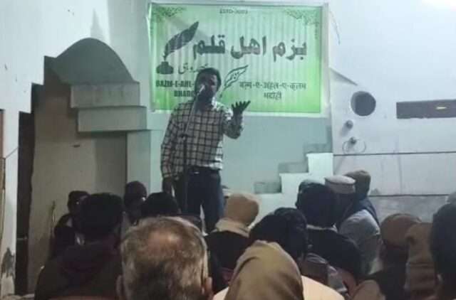 BHADOHI NEWS: चैरी बाजार स्थित महमूद अख्तर के कैंपस में शनिवार की रात मशहूर शायर ताहिर फराज और रईस अंसारी की याद में एक मुशायरा एवं कवि सम्मेलन का आयोजन किया गया। कार्यक्रम का आगाज शायर जावेद आसिम ने नात-ए-पाक पेश कर किया। इस मुशायरा एवं कवि सम्मेलन में कई प्रसिद्ध शायरों और कवियों ने शिरकत की। इनमें हसनैन अंसारी, जावेद आसिम, अर्सलिन फैजानी, सुहैल नदीमी, नौशाद भदोहवी, शाबान करीमी, प्रेम जोनपुरी, रईस अंसारी, शमशाद करीमी, जव्वाद जौनपुरी, शब्बीर जौनपुरी, फैजान वहीदी और कैसर जौनपुरी शामिल थे। सभी ने अपनी गीतों, गजलों और शेरों-शायरी से श्रोताओं को मंत्रमुग्ध कर दिया। शायरों और कवियों की प्रस्तुतियों पर मौजूद लोग लगातार श्वाह-वाहश् और श्बहुत खूबश् कहकर उनकी सराहना करते रहे। जब तक मुशायरा और कवि सम्मेलन चला, श्रोता अपनी जगह से हिले नहीं और कार्यक्रम का भरपूर आनंद लिया। कार्यक्रम में समाजवादी पार्टी के नेता प्रदीप जायसवाल, संतोष यादव, टोनी मंसूरी और जितेंद्र बरनवाल मुख्य अतिथि के रूप में उपस्थित रहे। इस मौके पर अनीस अहमद, हाजी साबिर अली, डॉ.जाबिर अली, समीउल्ला सिद्दीकी, मुंशी रजा, महफूज आलम, जाहिद उमर, महमूद अख्तर, शादाब, अरशद कमाल, खालिद उमर, रोशन अंसारी, जिया मुसाहिद, हाफिज नुमान और डॉ.इमरान शामिल थे। मुशायरे की सदारत डॉ.अबरार अहमद व निजामत रईस अंसारी ने किया।