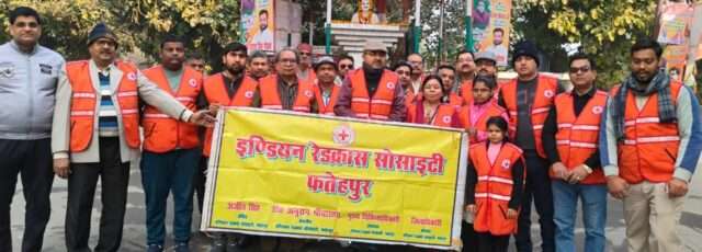 FATEHPUR NEWS: इंडियन रेडक्रॉस सोसाइटी एवं डॉ. सत्यनारायण सेवा फाउंडेशन के संयुक्त तत्वावधान में रविवार को भारत के पूर्व प्रधानमंत्री लाल बहादुर शास्त्री की 59वीं पुण्यतिथि पर श्रद्धांजलि कार्यक्रम आयोजित किया गया। कार्यक्रम शास्त्री चौक स्थित लाल बहादुर शास्त्री की प्रतिमा पर आयोजित हुआ, जहां पूजन व माल्यार्पण किया गया। कार्यक्रम के दौरान सर्वप्रथम इंडियन रेडक्रॉस सोसाइटी के पदाधिकारियों द्वारा प्रतिमा स्थल की साफ-सफाई की गई। इसके बाद धूप–आरती कर प्रतिमा पर माल्यार्पण किया गया। इस अवसर पर उपस्थित लोगों ने “जय जवान जय किसान”, “लाल बहादुर शास्त्री अमर रहें”, “भारत माता की जय” और “वंदे मातरम्” के नारे लगाए। श्रद्धांजलि कार्यक्रम का नेतृत्व इंडियन रेडक्रॉस सोसाइटी उत्तर प्रदेश के चेयरमैन एवं कार्यकारिणी सदस्य डॉ. अनुराग श्रीवास्तव ने किया। उन्होंने कहा कि लाल बहादुर शास्त्री का जीवन सादगी, ईमानदारी और राष्ट्रभक्ति का प्रतीक है और उनके जीवन से प्रेरणा लेकर सभी को राष्ट्र प्रथम की भावना से सेवा कार्यों में जुटना चाहिए। इस अवसर पर कार्यकारिणी सदस्य डॉ. विवेक श्रीवास्तव, दिलीप कुमार श्रीवास्तव, आजीवन सदस्य डॉ. श्रीमती अरुणा श्रीवास्तव, दिनेश कुमार श्रीवास्तव, सर्वेश गुप्ता, वेदप्रकाश गुप्ता, गिरजाशंकर श्रीवास्तव, बालमुकुंद गुप्ता, सुरेश चंद्र श्रीवास्तव, अभिनव श्रीवास्तव, के.के. सिंह, सुरेश कुमार श्रीवास्तव, गोरेलाल लोधी, उमेश कुमार श्रीवास्तव, विभा मिश्रा, प्रेमचंद मौर्य, विनय कुमार गुप्ता, अंगद सिंह चंदेल, कल्याण देव, रश्मि तिवारी, राजेश राजन, चैतन्य कुमार सहित अन्य लोग मौजूद रहे।