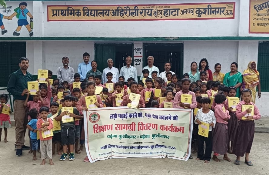 KUSHINAGAR NEWS: नयी दिशा पर्यावरण सेवा संस्थान द्वारा “पढ़ेगा कुशीनगर, बढ़ेगा कुशीनगर” की भावना के साथ जन सहयोग से चलाये जा रहे शिक्षण सामग्री वितरण कार्यक्रम के क्रम में बुधवार को हाटा विकास खण्ड स्थित प्राथमिक विद्यालय अहिरौली राय में विद्यार्थियों को कॉपी, कलम, पेंसिल, रबर, कटर आदि शिक्षण सामग्री भेंट कर पढ़ने व आगे बढ़ने हेतु प्रोत्साहित किया गया।कार्यक्रम को सम्बोधित करते पूर्व प्राचार्य डॉ0 दया शंकर तिवारी ने विद्यार्थियों से शिक्षण सामग्री का सदुपयोग करने की बात कही। उन्होंने कहा कि शिक्षा के साथ संस्कार को भी धारण करना जरूरी है। गुरुजनों और माता पिता का चरण स्पर्श कर आशीर्वाद लें। वरिष्ठ होमियोपैथिक चिकित्सक डा0 नित्यानांद श्रीवास्तव ने बच्चों के उज्ज्वल भविष्य की कामना करते हुए उन्हें शिक्षा के माध्यम से आगे बढ़ने का आशीर्वाद दिया। कार्यक्रम का संचालन सचिव डॉ0 हरिओम मिश्र, स्वागत प्रधानाध्यापक मोहम्मद नसरुद्दीन एवं आभार पूर्व शाखा प्रबंधक नरेंद्र नाथ त्रिपाठी ने किया। इस अवसर पर हृदयानंद पांडेय, राजीव नयन द्विवेदी, इंद्र कुमार मिश्र, देवानंद गौड़, धर्मेंद्र गौड़, कुलसुम बेगम, सीता वर्मा, रीमा सिंह, प्रीति त्रिपाठी, रियाजुद्दीन अंसारी, रमावती देवी, सुभावती देवी, मीरा देवी आदि उपस्थित रहे।