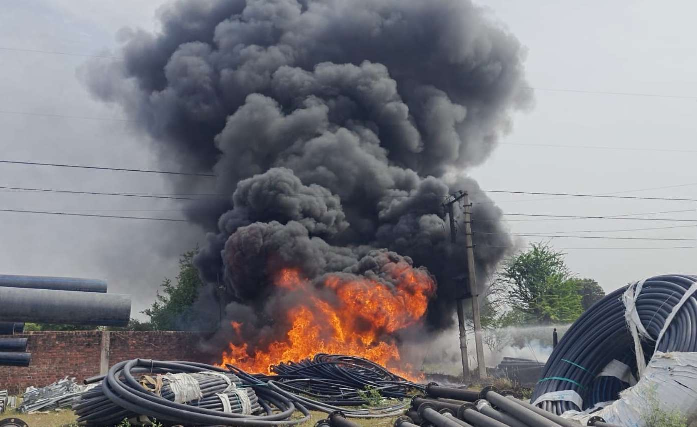 FATEHPUR NEWS: कोतवाली बिंदकी क्षेत्र के अंतर्गत जनता गांव मोड़ के समीप शनिवार सुबह लगभग 10 बजे हाईटेंशन लाइन के ट्रांसफार्मर में हुए शॉर्ट सर्किट से जल निगम के स्टोर में भीषण आग लग गई। आग लगते ही क्षेत्र में हड़कंप मच गया और मौके पर भारी भीड़ एकत्र हो गई। जानकारी के अनुसार, पावर मेक प्रोजेक्ट लिमिटेड के अंतर्गत राजधानी प्राइवेट लिमिटेड के स्टोर में रखे प्लास्टिक के मोटे पाइप आग की चपेट में आ गए। प्लास्टिक के पाइप जलकर आग का गोला बन गए और काले धुएं का गुबार कई किलोमीटर दूर तक दिखाई देता रहा। खुशकिस्मती रही कि पास में ही फायर स्टेशन होने के कारण दमकल की गाड़ियां तुरंत मौके पर पहुंच गईं। करीब आधे घंटे की कड़ी मशक्कत के बाद आग पर काबू पा लिया गया, लेकिन तब तक जल निगम के लाखों रुपये मूल्य के पाइप जलकर खाक हो चुके थे। आग की इस घटना में जनता गांव निवासी विकास अवस्थी की लगभग एक बीघा गेहूं की फसल भी जल गई। ग्रामीणों की तत्परता से आग को समय रहते बुझा लिया गया, अन्यथा आसपास खड़ी सैकड़ों बीघा पकी फसल भी चपेट में आ सकती थी। सूचना पर लेखपाल उमेंद्र मौर्य, अजीत उमराव एवं प्रभाकर पटेल मौके पर पहुंचे और क्षति का आकलन किया। पुलिस भी घटनास्थल पर पहुंचकर जांच में जुट गई है।