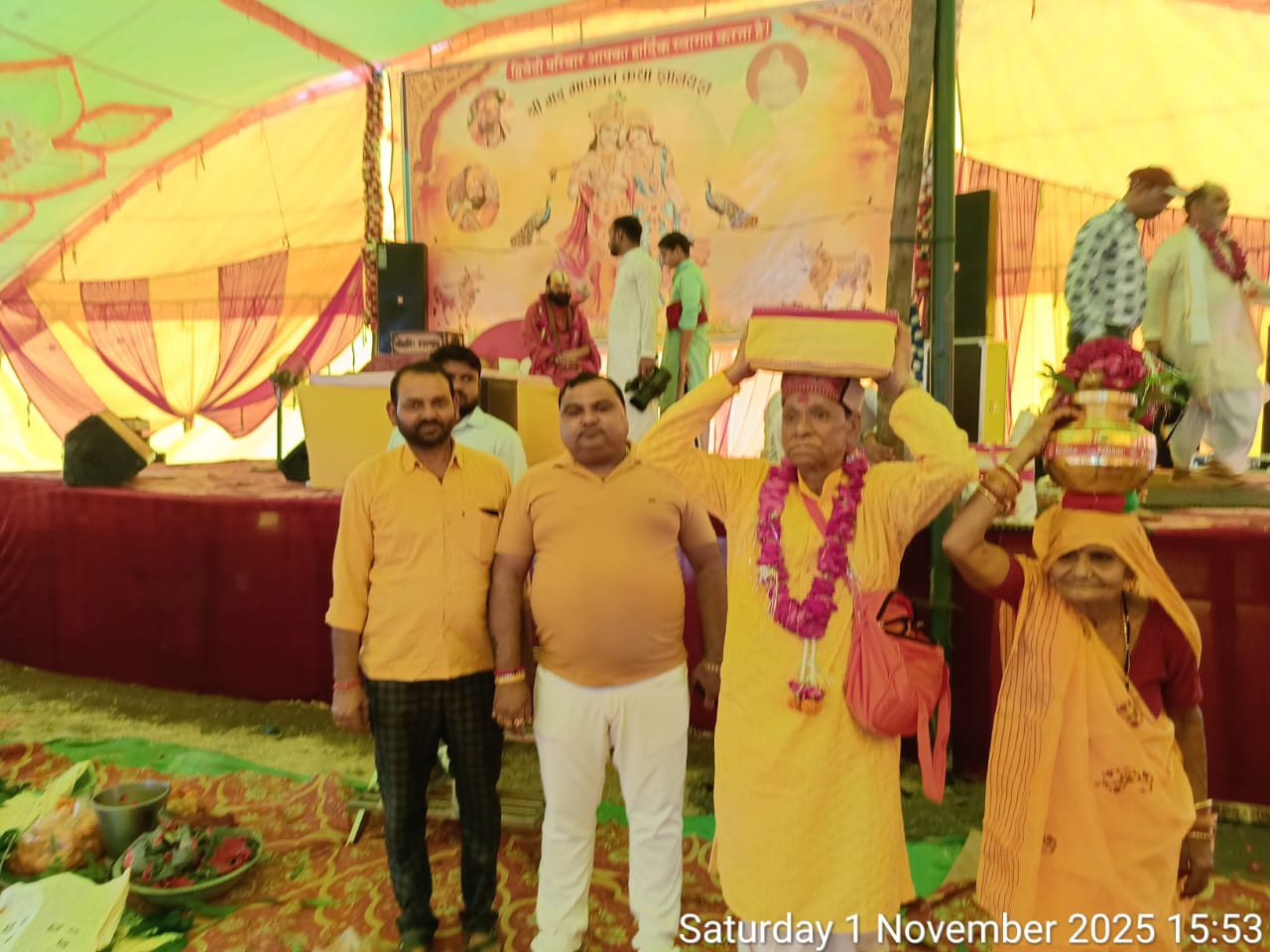 JALAUN NEWS: ग्राम ईंटों में भूरी माता मंदिर के पास मैदान में दुबे परिवार द्वारा आयोजित श्रीमद्भागवत कथा की भव्य कलश यात्रा गाजे-बाजे के साथ निकाली गई! श्रद्धालुओं के जयकारों से वातावरण भक्तिमय हो गया। कथा स्थल पर विधिविधान से पूजन हुआ इसके बाद गाजे-बाजे के साथ कलश यात्रा निकाली गई यात्रा में शामिल भक्तों ने खूब जयकारे लगाए। भक्ति गीतों की धुन के बीच निकली कलश यात्रा से ग्राम का माहौल भक्तिमय हो गया। बैंडबाजे की धुन व भक्ति गीतों पर लोग झूमते नजर आए।कथा शुरू होने से पहले गाजे-बाजे के साथ महिलाएं सिर पर मंत्र पूजित कलश रखकर मंगल गीत गाते हुए विधिविधान से पूजन करने के बाद कलश में जल भरकर यात्रा वापस हुई। यात्रा में झांकियां आकर्षण का केंद्र रही! कलश यात्रा भूरी माता मंदिर प्रांगण से प्रारंभ होकर ईंटों तिराहे से होते हुए ग्राम में घूमी। विभिन्न मंदिर होते हुए कलश यात्रा का विराम कथा स्थल पर हुआ। विदित हो कि दुबे परिवार द्वारा ग्राम ईंटो में सात दिवसीय श्रीमद भागवत कथा का आयोजन कराया जा रहा है कथा की भक्ति ज्ञान गंगा महामंडलेश्वर दीनबंधु दास महाराज जी के मुखारबिंदु से प्रवाहित होगी! इस मौके पर परीक्षित उर्मिला रविन्द्रनाथ दुबे परिवारीजन पुष्पा महेंद्रनाथ दुबे उर्मिला सुरेंद्र दुबे राजकुमारी सतीशचंद्र दुबे नीतू बांके बिहारी दुबे गोपाल अजय संजय संदीप सुजीत बिहारी अतुल जितेंद्र उपेंद्र दुबे सहित सैकड़ों श्रद्धालु महिलाएं बच्चे शामिल रहे| सुरक्षा में थानाध्यक्ष सतीश कुमार सहित थाना ईंटों चौकी पुलिस स्टाफ मौजूद रहा!