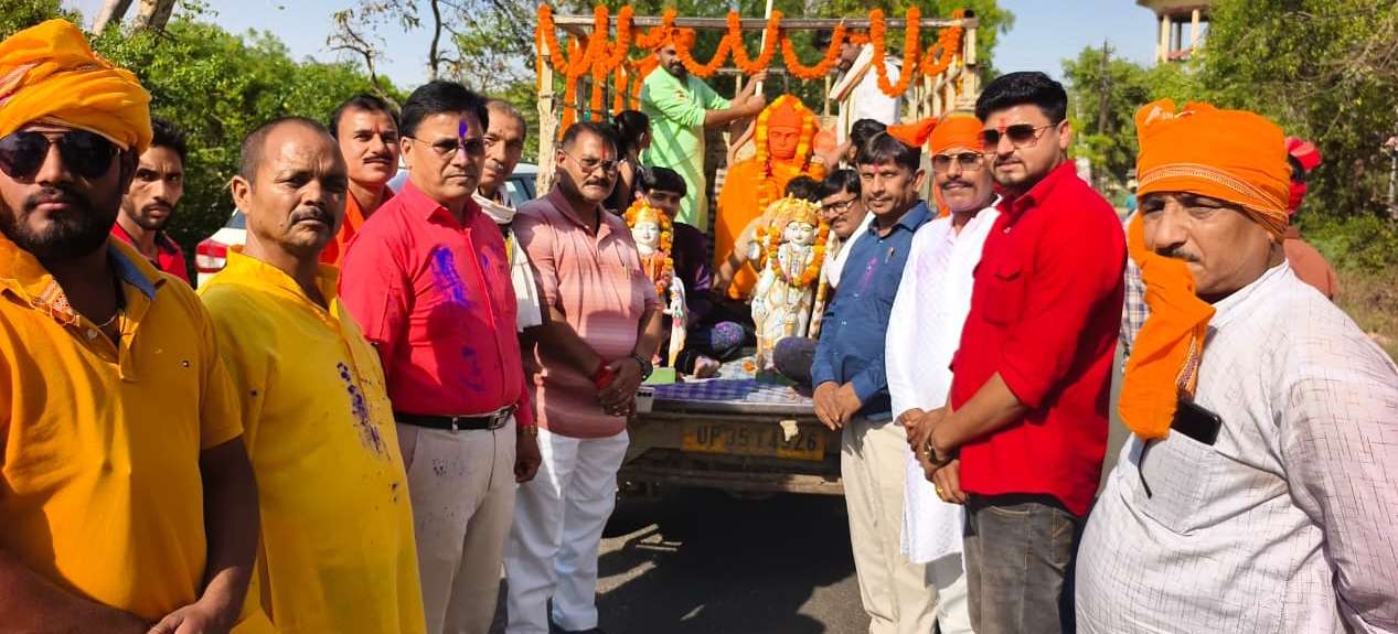 PRATAPGARH NEWS: नगर पंचायत लालगंज के शीतलमऊ वार्ड स्थित पहलवान साहब वीर बाबा में शुक्रवार को श्रीराम दरबार एवं हनुमान जी महराज की मूर्ति स्थापना को लेकर नगर में भव्य शोभा यात्रा निकाली गयी। शोभा यात्रा में शामिल श्रद्धालु अबीर गुलाल उड़ाते धाम से इन्दिरा चौक होते हुए श्रीहनुमत निकेतन व रायबरेली रोड के परमानंद आश्रम से जंगली वीर बाबा धाम पहुंचे। विभिन्न मंदिरों में पूजन अर्चन के साथ श्रद्धालुओं ने शोभा यात्रा में महावीर हनुमान जी महाराज व श्रीराम के जयघोष से वातावरण को भक्तिमय बना दिया। चौक समेत विभिन्न स्थानों पर शोभा यात्रा में व्यापारियों तथा नगर के लोग भगवान श्रीराम दरबार पर पुष्पवर्षा भी करते दिखे। वहीं विधिविधान से वैदिक मंत्रोच्चारण के मध्य दूसरे पहर भगवान श्रीराम दरबार व हनुमान जी महाराज की मूर्ति स्थापना हुई। धार्मिक आयोजन को लेकर भण्डारे में देर शाम तक श्रद्धालुओं ने भगवान का प्रसाद ग्रहण किया। शोभा यात्रा में चेयरपर्सन प्रतिनिधि संतोष द्विवेदी व रूरल बार के राष्ट्रीय अध्यक्ष ज्ञानप्रकाश शुक्ल भी शामिल हुए। संयोजक समिति के छविराज सिंह, विक्रम सिंह, प्रमोद सिंह, पंकज सिंह, राज सिंह, गोलू सिंह, सौरभ सिंह ने भगवान का विधिविधान से पूजन अर्चन किया। कार्यक्रम में महिला श्रद्धालुओं ने भक्ति संगीत की भी मनोरम प्रस्तुतियां दी। इस मौके पर रामचंद्र त्रिपाठी, अर्जुन सिंह, शैलेष सिंह, संतोष सिंह, अंशू सिंह, चंदन पाण्डेय, सोनू मिश्र आदि मौजूद रहे।