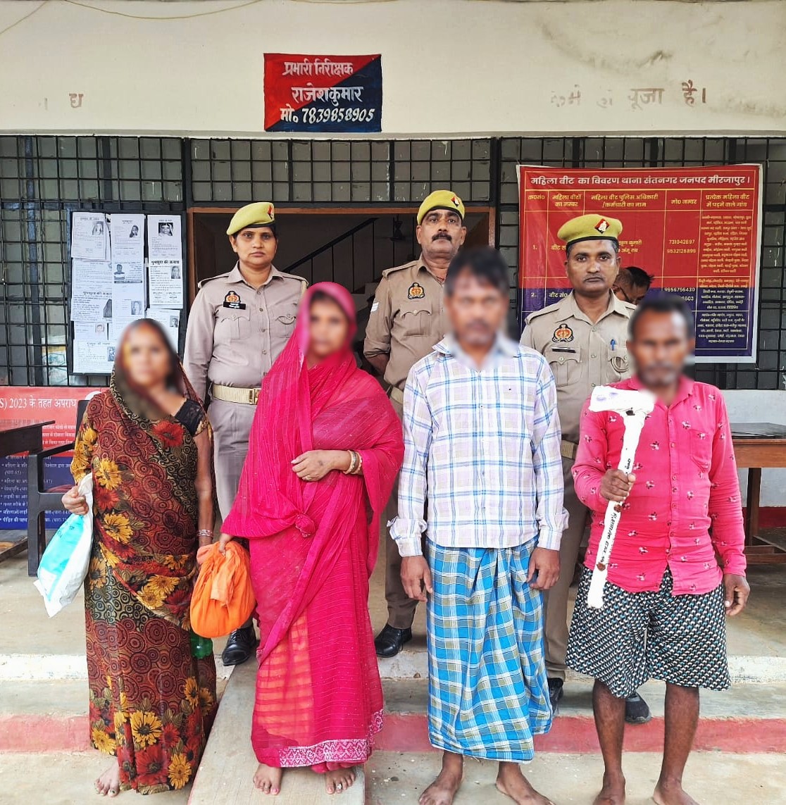 MIRZAPUR NEWS: सन्तनगर थाना क्षेत्र में हत्या के प्रयास के मामले में शनिवार को पुलिस ने चार नामजद अभियुक्तों को गिरफ्तार किया। अभियुक्तों की पहचान बऊ उर्फ शंकर (65 वर्ष) भोला चौहान (45 वर्ष) रजवन्ती (55 वर्ष) लीलावती (42 वर्ष) की समसदिया गांव के निवासी रूप में हुई हैं। इन अभियुक्तों को ग्राम तुलसीपुर नहर पुलिया के पास से गिरफ्तार किया गया है। गिरफ्तारी करने वाली पुलिस टीम में उप-निरीक्षक दिनेश कुमार श्रीवास्तव, आरक्षी कमलेश कुमार और महिला आरक्षी नीलम कुमारी शामिल थे।