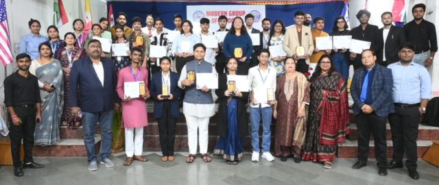 मॉडर्न ग्रुप ऑफ़ इंस्टीट्यूशंस के चेयरमैन डॉ रोहिन विश्वनाथन एवं श्रीमति अंशिता विश्वनाथन ने विजयी प्रतिभागियो को मेडल पहनाकर सम्मानित किया एवं सभी प्रतिभागियों से कहा कि यह विविध क्षेत्रों—राजनीति, शासन, अध्यात्म और मीडिया—से दूरदर्शी नेताओं को एक साझा मिशन को साथ लाता है: हज़ारों युवा भारतीयों में नैतिक नेतृत्व और नागरिक भागीदारी के लिए प्रेरणा, सशक्तिकरण और उत्साह जगाना, जहाँ छात्र – छात्रायेँ अग्रणी भूमिका निभाएँगे, जो न केवल अपने ज्ञान को साझा करेंगे, बल्कि उस समर्पण और वैश्विक मूल्यों को भी प्रदर्शित करेंगे । अंत में कार्यक्रम के अध्यक्ष सचिन शर्मा ने सभी विजेताओं , प्रतिभागियों को बधाई दी एवं विद्यालय प्रबंधक समिति के सदस्यों को सहयोग एवं मार्गदर्शन के लिए धन्यवाद दिया ।