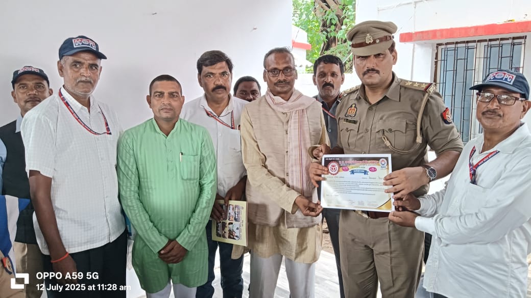 PRAYAGRAJ NEWS: जिला अपराध निरोधक समिति तहसील मेजा, कोराँव तहसील सचिव दिग्विजय सिंह के नेतृत्व में थाना कमेटी प्रभारी कोराँव नरेन्द्र देव मिश्र, सह थाना कमेटी प्रभारी सफात अली  शाह, थाना कमेटी प्रभारी मेजा हरीशंकर यादव, तहसील संयुक्त सचिव मेजा प्रयागलाल कुशवाहा, उरुवा ब्लॉक प्रभारी  मोहम्मद व आफताब, डा व शिवदत्त पटेल, डा व मनोज कुमार पटेल, जावेन्द्र प्रसाद एडवोकेट, पवन कुमार सिंह आदि ने मेजा कोतवाली समाधान दिवस में सहायक पुलिस आयुक्त सन्त प्रसाद उपाध्याय को अंगवस्त्र, यथार्थ गीता एवम समिति का प्रशस्ति पत्र व सेवा पथ पत्रिका देकर सम्मानित किया गया। साथ में कोतवाल राजेश उपाध्याय को प्रशस्ति पत्र एवम नायब तहसीलदार  नन्द लाल को सेवा पथ पत्रिका देकर सम्मानित किया गया। तहसील सचिव के द्वारा कमेटी का परिचय एवम माननीय उच्चाधिकारी गणों के आदेश कि प्रति, एवं कोराँव मेजा मांडा कि कि सूची उपलब्ध कराया गया। ए व सी व, पी व, मेजा के द्वारा कमेटी के द्वारा किये जा रहें कार्यों कि सराहना करते हुए प्रत्येक माह अपने कार्यालय में समिति कि बैठक करने के लिए कहे।