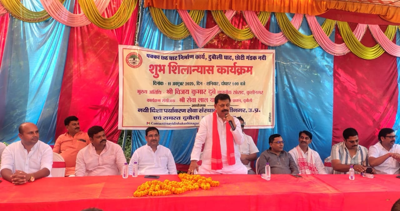 KUSHINAGAR NEWS: मोतीचक विकास खण्ड अंतर्गत छोटी गंडक नदी के दुबौली घाट पर शनिवार को नयी दिशा पर्यावरण सेवा संस्थान के तत्वावधान में क्षेत्रीय सांसद विजय कुमार दुबे ने पक्का छठ घाट निर्माण कार्य का शिलान्यास किया। उन्होंने अपने संबोधन में छठ घाट के लोकापर्ण के पूर्व हाटा विकास खण्ड स्थित सोहसा तट पर सोहसा मोक्ष धाम निर्माण के शिलान्यास की बात कही। यह कार्य नयी दिशा पर्यावरण सेवा संस्थान की पहल और जनसमर्थन का परिणाम है। संस्था ने नवंबर 2024 में ही देव दीपावली के कार्यक्रम में दुबौली घाट पर छठ घाट और सोहसा घाट पर मोक्षधाम निर्माण की मांग की थी, जिसमें सांसद श्री दुबे ने मंच से कार्य कराने की घोषणा की थी। लेकिन कई महीनों तक कोई कार्यवाही न होने पर संस्था सचिव डॉ0 हरिओम मिश्र के नेतृत्व में क्षेत्रवासियों का एक प्रतिनिधि मंडल सांसद श्री दुबे के गोरखपुर स्थित आवास पर गया और अपनी मांग को फेसबुक के माध्यम से जनता के मध्य भी साझा किया। जिसे व्यापक समर्थन मिला। इसका संज्ञान ले सांसद श्री दुबे ने छठ घाट निर्माण की प्रक्रिया शुरू की और शिलान्यास सम्पन्न हुआ। संस्था सदस्यों एवं क्षेत्रीय लोगों ने छठ घाट निर्माण कार्य के शिलान्यास और इसके लोकार्पण के पूर्व सोहसा मोक्ष धाम निर्माण के शिलान्यास की घोषणा हेतु सांसद श्री दुबे की सराहना की। कार्यक्रम संयोजक ग्राम प्रधान सेवालाल यादव ने सभी का स्वागत व आभार प्रकट किया। इस अवसर पर सत्यजीत सिंह, बबलू मिश्र, राम कोमल चौधरी, सोहसा प्रधान मुकेश राव, सुधीर राव, ओम प्रकाश जायसवाल, चंद्र प्रकाश यादव, कपिलदेव गुप्ता, सुग्रीव प्रसाद, रणधीर राव, जुबेर अहमद, हरीन्द्र सिंह, राजेश राव, छोटे राव, यमुना सागर, आशुतोष मिश्र, वेद प्रकाश तिवारी, राघवेंद्र शुक्ल, हरगोविंद राव, कपिलदेव गुप्ता, सुग्रीव, विजय कुशवाहा, उमापति सिंह, वेद प्रकाश त्रिपाठी, रणधीर राव, हरेंद्र सिंह, चिंटू मणि, सीताराम भारती, राणा प्रताप राव, अमरनाथ मद्देशिया आदि उपस्थित रहे।