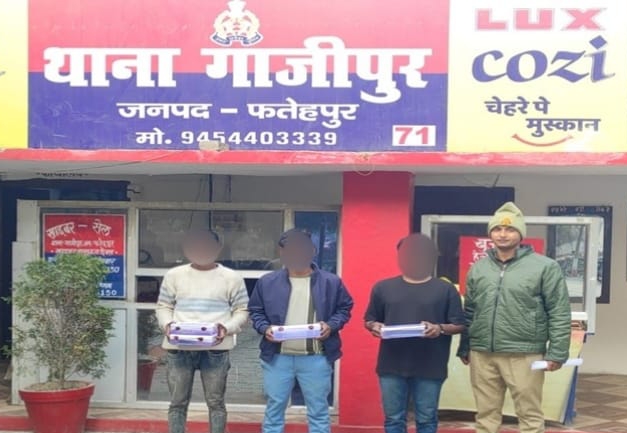 FATEHPUR NEWS: पुलिस अधीक्षक अनूप कुमार सिंह के निर्देशन में अपराध एवं अपराधियों के विरुद्ध चलाए जा रहे अभियान के तहत थाना गाजीपुर पुलिस को बड़ी सफलता मिली है। पुलिस टीम ने साइबर ठगी करने वाले तीन अभियुक्तों को गिरफ्तार करते हुए उनके कब्जे से चार मल्टीमीडिया टच स्क्रीन मोबाइल फोन एवं एक कीपैड मोबाइल बरामद किया है। पुलिस के अनुसार, दिनांक 24 दिसंबर 2025 को थाना गाजीपुर पुलिस टीम द्वारा कार्रवाई करते हुए साइबर ठगी में संलिप्त अभियुक्त अर्जुन पुत्र नरेश (19 वर्ष), अरुण सिंह पुत्र ओमप्रकाश (22 वर्ष), दोनों निवासी ग्राम भगवानपुर थाना गाजीपुर तथा कुंदन गोस्वामी पुत्र बृजभूषण (23 वर्ष) निवासी ग्राम बनकटा थाना गाजीपुर जनपद फतेहपुर को गिरफ्तार किया गया। गिरफ्तारी व बरामदगी के आधार पर थाना गाजीपुर पर मु0अ0सं0 299/2025 धारा 319(2)/318(2)/3(5) बीएनएस एवं 66सी/66डी आईटी एक्ट के तहत मुकदमा पंजीकृत कर अभियुक्तों को विधिक कार्यवाही के बाद माननीय न्यायालय भेज दिया गया है। इस कार्रवाई को अंजाम देने वाली पुलिस टीम में थानाध्यक्ष हनुमान प्रताप सिंह, उप निरीक्षक आकाश मिश्रा (चौकी प्रभारी शाह), कांस्टेबल नानक कुमार, कांस्टेबल शुभम अवस्थी एवं कांस्टेबल मनोज कुमार शामिल रहे। पुलिस का कहना है कि साइबर अपराध के मामलों में लगातार कार्रवाई की जा रही है और ऐसे अपराधियों के विरुद्ध सख्त कदम उठाए जाएंगे।