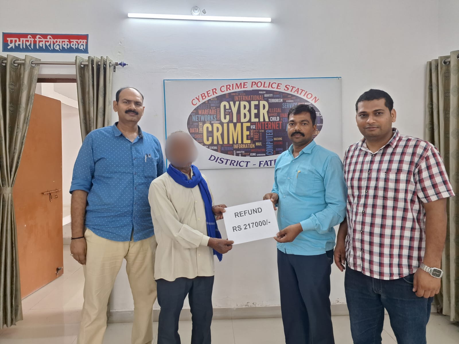 FATEHPUR NEWS: साइबर अपराध एवं अपराधियों पर प्रभावी नियन्त्रण हेतु पुलिस अधीक्षक फतेहपुर के कुशल निर्देशन व अपर पुलिस अधीक्षक व क्षेत्राधिकारी अपराध के निकट पर्यवेक्षण में एनसीआरपी पोर्टल एवं पीड़ितों द्वारा दिये गये शिकायती प्रार्थना पत्र की जाँच के अनुक्रम में साइबर क्राइम पुलिस थाना जनपद फतेहपुर टीम द्वारा सार्थक प्रयास करते हुये शिकायतकर्ताओं की धनराशि उनके खाते में पुनः वापस कराया गया। शिकायतकर्ताओं द्वारा जनपदीय उच्चाधिकारियों व साइबर क्राइम पुलिस थाना टीम का आभार व्यक्त किया। इस क्रम में सक्षम सिंह चौहान निवासी भिटौरा बाईपास, रामनगर पक्का तालाब थाना कोतवाली जनपद फतेहपुर द्वारा फ्रेंचाइजी लेने के लिये कुल 5,49,250/- रूपये की धनराशि आनलाइन ट्रांसफर किया गया था। आवेदक द्वारा अपने साथ साइबर फ्राड की जानकारी होने पर तत्काल एनसीआरपी पोर्टल पर शिकायत दर्ज करायी गयी थी, एनसीआरपी पोर्टल पर दर्ज शिकायत पर साइबर क्राइम पुलिस थाना टीम द्वारा त्वरित कार्यवाही करते हुये सम्बन्धित लाभार्थी खाताधारक की तस्दीक व सम्बन्धित बैंक से पत्राचार कर समन्वय स्थपित करते हुये सम्पूर्ण धनराशि 549250/- रूपये को आवेदक के बैंक खाते में सकुशल वापस करा दी गई। वहीं आवेदिका सम्पत देवी निवासी अजमतपुर थाना ललौली जनपद फतेहपुर के खाते से कुल खाते से 217000/- रूपये की धनराशि आनलाइन यूपीआई के माध्यम ट्रांसफर कर लिया गया। आवेदिका के द्वारा एनसीआरपी पोर्टल पर शिकायत दर्ज व साइबर क्राइम पुलिस थाना पर अभियोग पंजीकृत कराया गया, साइबर क्राइम पुलिस थाना टीम द्वारा त्वरित कार्यवाही करते हुये सम्बन्धित बैंकों से पत्राचार कर समन्वय स्थपित करते हुये ट्रांसफर धनराशि 217000/- रूपये को होल्ड कराते हुये विवेचनात्मक कार्यवाही के अनुक्रम कर सम्पूर्ण धनराशि 217000/- रूपये आवेदिका के बैंक खाते में सकुशल वापस करा दी गई। तथा आवेदक रोहित गौतम निवासी जलाला थाना कल्यानपुर जनपद फतेहपुर द्वारा सोलर पॉवर प्लांट लगवाने के नाम पर के लिये कुल 118000/- रूपये की धनराशि आनलाइन ट्रांसफर किया गया था। आवेदक द्वारा अपने साथ साइबर फ्राड की जानकारी होने पर तत्काल एनसीआरपी पोर्टल पर शिकायत दर्ज कर थाना कल्यानपुर पर अभियोग कराया गया था, एनसीआरपी पोर्टल पर दर्ज शिकायत पर साइबर क्राइम पुलिस थाना टीम द्वारा त्वरित कार्यवाही करते हुये सम्बन्धित लाभार्थी खातों में समस्त धनराशि होल्ड कराकर सम्बन्धित बैंकों से पत्राचार कर विधिक कार्यवाही के क्रम में  सम्पूर्ण धनराशि 118000/- रूपये को आवेदक के बैंक खातें में सकुशल वापस करा दी गई। इसी तरह आवेदक सुरेश कुमार निवासी चक इटैली थाना हथगाँव जनपद फतेहपुर मोबाइल सिम बदलकर खाते से कुल खाते से 91740/- रूपये की धनराशि आनल