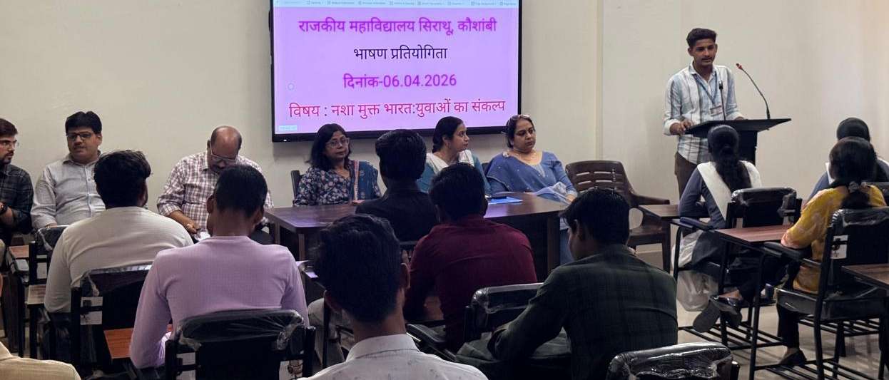 KAUSHAMBI NEWS: देश को नशा-मुक्त बनाने और युवाओं में जागरूकता फैलाने के उद्देश्य से राजकीय महाविद्यालय सिराथू में ‘नशा-मुक्त भारत : युवाओं का संकल्प’ विषय पर भाषण प्रतियोगिता का आयोजन किया गया। कार्यक्रम प्राचार्य प्रो. संजय प्रसाद शर्मा के निर्देशन में सम्पन्न हुआ, जिसमें छात्र-छात्राओं ने बढ़-चढ़कर प्रतिभाग किया। प्रतियोगिता में बीएससी द्वितीय सेमेस्टर की छात्रा वर्तिका साहू ने प्रथम स्थान प्राप्त किया। वहीं छात्र प्रकाश मालवीय और कृतिका श्रीवास्तव ने क्रमशः द्वितीय और तृतीय स्थान हासिल किया। प्रतिभागियों ने नशे के दुष्प्रभावों पर प्रभावी ढंग से अपने विचार रखे। इतिहास विभाग की विभागाध्यक्ष प्रो. मीरा पाल ने कहा कि नशे की लत एक दीमक की तरह होती है, जो व्यक्ति के शरीर के साथ-साथ उसके परिवार के सपनों को भी नष्ट कर देती है। उन्होंने बताया कि शराब, सिगरेट व अन्य मादक पदार्थों के सेवन से कैंसर, लीवर संबंधी बीमारियां और मानसिक अवसाद जैसी गंभीर समस्याएं उत्पन्न होती हैं कार्यक्रम संयोजक डॉ. उत्तम कुमार शुक्ल ने उपस्थित सभी प्राध्यापकों, कर्मचारियों और छात्र-छात्राओं को नशा-मुक्ति की शपथ दिलाई। उन्होंने आचार्य रामचंद्र शुक्ल के कथन का उल्लेख करते हुए कहा कि “कुसंगति का ज्वर सबसे भयानक होता है” और नशे की शुरुआत अक्सर बुरी संगति से ही होती है, जो व्यक्ति की नैतिकता और बुद्धि को प्रभावित करती है। कार्यक्रम का संचालन डॉ. उत्तम कुमार शुक्ल ने किया, जबकि आभार ज्ञापन डॉ. जसविंदर कौर ने किया। इस अवसर पर डॉ. स्मिता पॉल, डॉ. विकास चंद्र, डॉ. धर्मेंद्र सिंह, डॉ. विपुल सिंह सहित महाविद्यालय के सभी प्राध्यापक व कर्मचारी उपस्थित रहे।