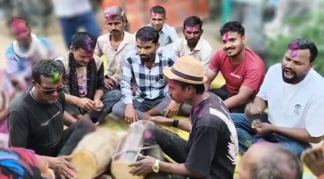 ग्रामीणों ने फाग गाकर और अबीर-गुलाल लगाकर दी बधाई