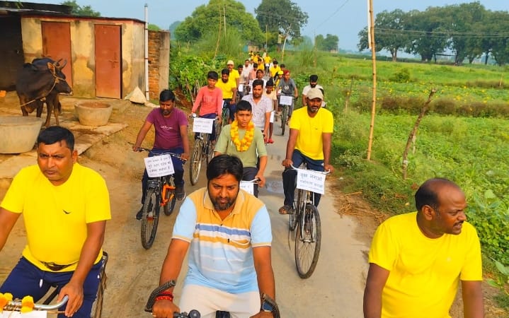 भदोही साइकिलिंग क्लब के तत्वावधान में पर्यावरण व स्वास्थ्य जागरूकता के लिए निकाली गई साइकिल यात्रा