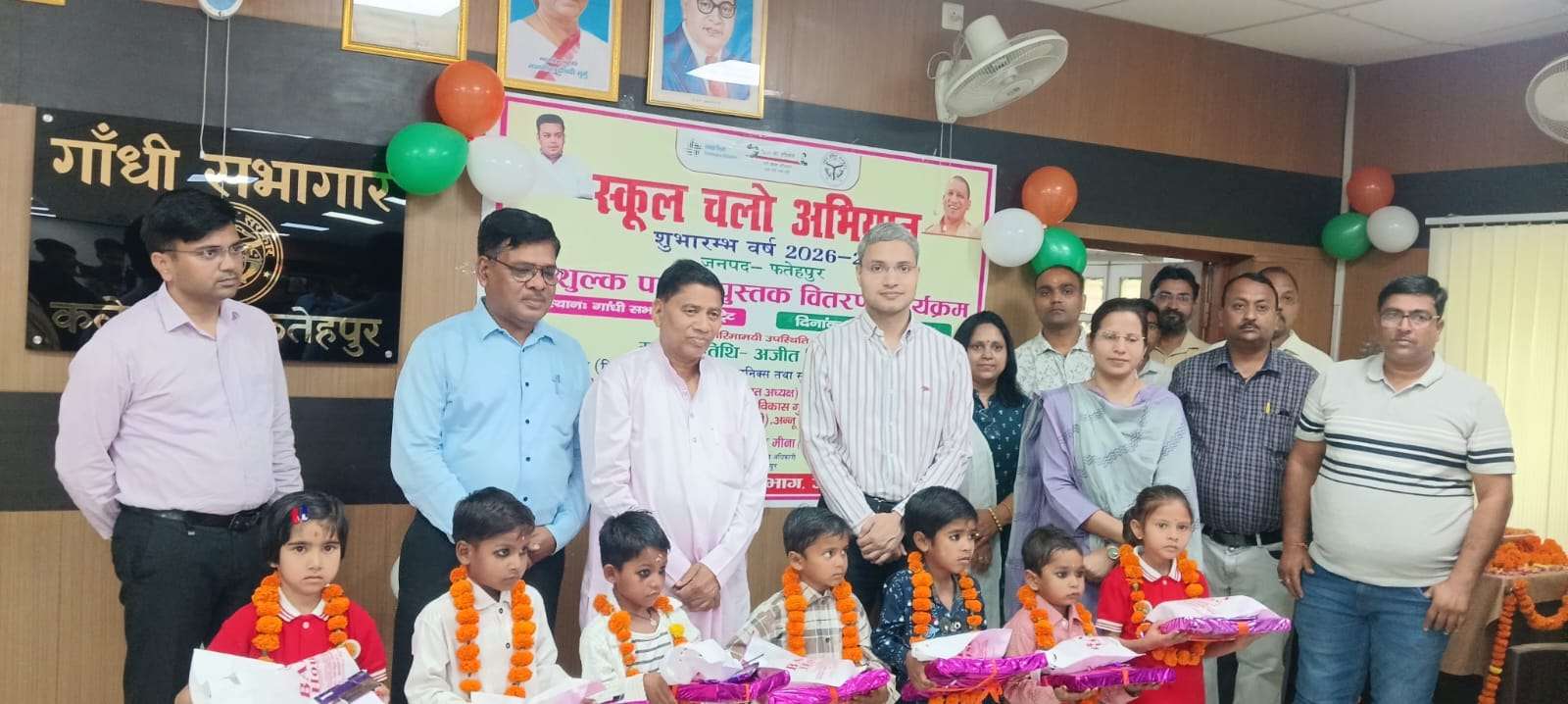 FATEHPUR NEWS: स्कूल चलो अभियान के प्रथम चरण का शुभारंभ मुख्यमंत्री योगी आदित्यनाथ द्वारा वाराणसी से किया गया, जिसका सजीव प्रसारण महात्मा गांधी सभागार, कलेक्ट्रेट में छात्र-छात्राओं, शिक्षकों एवं जनप्रतिनिधियों की उपस्थिति में देखा एवं सुना गया। इसके पश्चात वर्ष 2026-27 के लिए स्कूल चलो अभियान एवं नि:शुल्क पाठ्यपुस्तक वितरण कार्यक्रम का शुभारंभ माननीय विधायक जहानाबाद श्री राजेंद्र पटेल एवं जिलाधिकारी रविन्द्र सिंह द्वारा दीप प्रज्वलन एवं मां सरस्वती की प्रतिमा पर माल्यार्पण कर किया गया। कार्यक्रम में परिषदीय विद्यालय के बच्चों ने सरस्वती वंदना एवं गणेश वंदना की मनमोहक प्रस्तुति दी, जिसकी उपस्थित अतिथियों ने सराहना की। इस दौरान नवप्रवेशी विद्यार्थियों को पुस्तकें वितरित कर एवं माल्यार्पण कर स्वागत किया गया। पुस्तकें पाकर बच्चों के चेहरे खुशी से खिल उठे। इस दौरान विधायक जहानाबाद राजेंद्र पटेल ने अपने संबोधन में कहा कि किसी भी सभ्य समाज का निर्माण शिक्षकों और विद्यार्थियों से होता है। उन्होंने कहा कि वर्तमान सरकार शिक्षा के क्षेत्र में अभूतपूर्व परिवर्तन कर रही है और परिषदीय विद्यालयों का कायाकल्प हुआ है। उन्होंने नामांकन अभियान को जनसहभागिता के साथ पर्व के रूप में मनाने का आह्वान किया। वहीं जिलाधिकारी रविन्द्र सिंह ने अभिभावकों, शिक्षकों एवं विद्यार्थियों को धन्यवाद देते हुए कहा कि बच्चों की शत-प्रतिशत उपस्थिति एवं उनके बेहतर प्रदर्शन में अभिभावकों और शिक्षकों की महत्वपूर्ण भूमिका होती है। उन्होंने निर्देश दिए कि पिछले वर्ष के सभी बच्चों का पुनः नामांकन सुनिश्चित किया जाए तथा नए विद्यार्थियों का अधिक से अधिक नामांकन कराया जाए। साथ ही आंगनवाड़ी के बच्चों को बालवाटिका में शत-प्रतिशत नामांकित करने के लिए विशेष प्रयास किए जाएं। कार्यक्रम के अंत में कलेक्ट्रेट परिसर से बाइक रैली एवं प्रचार वैन को हरी झंडी दिखाकर रवाना किया गया। इस अवसर पर परियोजना निदेशक (डीआरडीए), जिला बेसिक शिक्षा अधिकारी, शिक्षकगण, अभिभावक, छात्र-छात्राएं एवं अन्य संबंधित अधिकारी उपस्थित रहे।