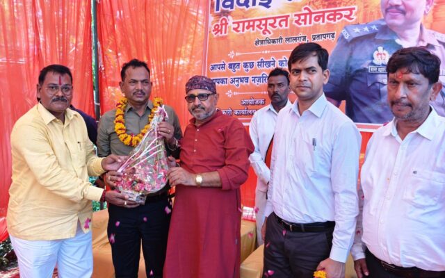 PRATAPGARH NEWS: लालगंज पुलिस उपाधीक्षक कार्यालय में गैरजनपद स्थानांतरित सीओ रामसूरत सोनकर को गुरूवार को समारोहपूर्वक विदाई दी गयी। कार्यक्रम में शामिल हुए अधिवक्ताओं तथा व्यापारियों व सभासदों ने चेयरपर्सन प्रतिनिधि संतोष द्विवेदी तथा संयुक्त अधिवक्ता संघ के अध्यक्ष अनिल त्रिपाठी महेश की अगुवाई में स्थानांतरित सीओ रामसूरत सोनकर को स्मृति चिन्ह व अंगवस्त्रम तथा बुकें भेंटकर सम्मानित किया। कार्यक्रम की अध्यक्षता करते हुए एसडीएम शैलेन्द्र वर्मा ने कहा कि लोक सेवा में जनता की आकांक्षा के अनुरूप आचरण ही सफलता का द्योतक है। उन्होने सीओ रामसूरत सोनकर की प्रशासनिक कार्यशैली को अनुकरणीय बताया। स्थानांतरित पुलिस उपाधीक्षक रामसूरत सोनकर ने अपने कार्यकाल में जनता के सहयोग तथा अपराध नियंत्रण अभियान में मिली सफलता में विभागीय सहयोगियों का भी आभार जताया। संचालन अधिवक्ता ज्ञानप्रकाश शुक्ल व संयोजन लालगंज प्रभारी निरीक्षक प्रदीप कुमार ने किया। सीओ कार्यालय के प्रधानांकिक रवीन्द्र यादव ने आभार जताया। कार्यक्रम को संग्रामगढ़ प्रभारी निरीक्षक सत्येन्द्र भदौरिया, लीलापुर प्रभारी निरीक्षक मनोज पाण्डेय, उदयपुर प्रभारी निरीक्षक प्रदीप कुमार, सांगीपुर एसओ मनीष त्रिपाठी ने संबोधित करते हुए सीओ रामसूरत सोनकर के मार्गदर्शन को सराहा। वहीं समारोह में संयुक्त अधिवक्ता संघ के उपाध्यक्ष आशीष तिवारी, देवी प्रसाद मिश्र, राममोहन सिंह, राव वीरेन्द्र सिंह, संदीप सिंह, अजय शुक्ल गुडडू, संतोष पाण्डेय, विनोद मिश्र, व्यापार मण्डल अध्यक्ष उदयशंकर दुबे ने भी विचार रखते हुए सीओ रामसूरत सोनकर की कार्यशैली की प्रशंसा की। इस मौके पर भाकियू अध्यक्ष भानु प्रताप सिंह, करणी सेना अध्यक्ष विनोद सिंह, सभासद पन्नेलाल पाल, जय कौशल, श्रीराम, ज्ञानचंद्र मोदनवाल, छोटे लाल सरोज, सिंटू मिश्र, प्रवीण शुक्ला, राहुल त्रिपाठी, बेनीलाल शुक्ल, अरूण त्रिपाठी आदि रहे।