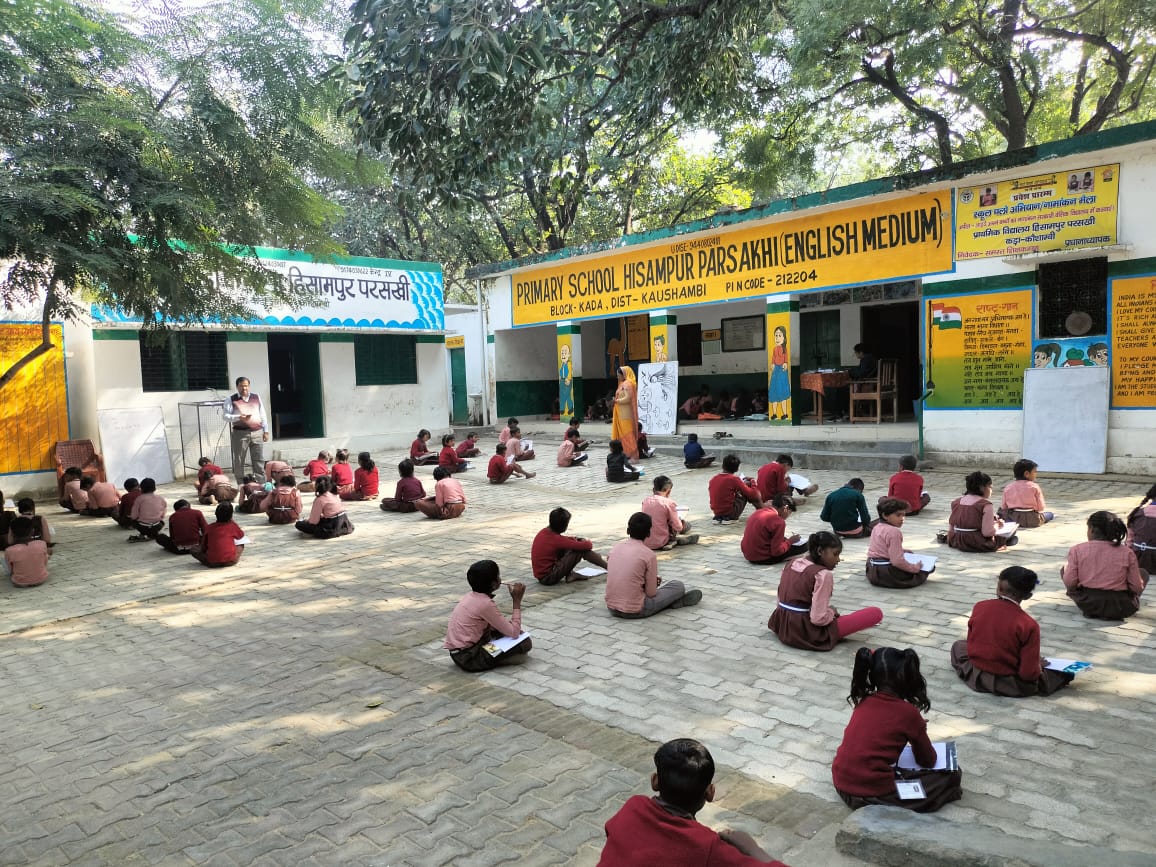 KAUSHAMBI NEWS: कड़ा ब्लॉक के प्राथमिक विद्यालय हिसामपुर परसखी में बच्चों के भाषा कौशल विकास को लेकर विभाग के निर्देशानुसार कक्षा तीन से कक्षा पांच तक के बच्चे की स्पेल बी परीक्षा प्रतियोगिता का आयोजन किया जिसमें बच्चों की हिंदी और अंग्रेजी विषय की परीक्षा हुई। जिसमें हिंदी में एक पैराग्राफ को इमला के रूप में बोला गया जिसे सुनकर बच्चों ने कापी पर नोट किया वहीं अंग्रेजी विषय में 50 शब्द फिल इन द ब्लैंक वाले दिए गए जिसे समझते हुए बच्चों ने किया। स्कूल से चयनित छात्र ब्लॉक स्तर पर होने वाली प्रतियोगिता में शामिल होंगे। प्रधानाध्यापक रामकृष्ण ने कहा कि इस प्रतियोगिता से बच्चों के अंदर स्पेल बी प्रतियोगिता का मुख्य उद्देश्य छात्रों की वर्तनी और शब्दावली कौशल को बेहतर बनाना है, साथ ही भाषा के प्रति रुचि और आत्मविश्वास बढ़ाना है। यह प्रतियोगिता छात्रों को अपनी भाषाई क्षमताओं का प्रदर्शन करने, एक प्रतिस्पर्धी और सहयोगी माहौल में सीखने और अंग्रेजी भाषा का अन्वेषण करने के लिए एक मंच प्रदान करती है। परीक्षा संपन्न कराने में स्कूल की शिक्षिका माया सिंह, रिया सेठी, संध्या देवी पटेल व बीरेंद्र कुमार ने सहयोग प्रदान किया।
