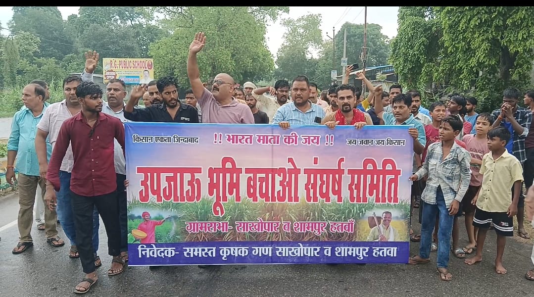 KUSHINAGAR NEWS: रविवार को बाड़ीपुल चौराहे पर श्यामपुर हतवा व साखोपार के किसानों ने स्मार्ट सिटी बनाने के लिए अपनी उपजाऊ जमीन न देने का एलान करते हुए श्यामपुर हतवा गांव से लेकर बाड़ी पुल चौराहे तक उपजाऊ भूमि बचाओ संघर्ष समिति के बैनर तले जमकर प्रदर्शन किया। बताते चले की नपा कुशीनगर में स्मार्ट सिटी बनाने के लिए जमीन न मिलने पर प्रशासन ने श्यामपुर हतवा और साखोपार के बीच जमीन चिन्हित किया है लेकिन किसान अपनी उपजाऊ जमीन न देने के ठान ली है।बैठक कर रहें किसानों ने कहा की स्मार्ट सिटी बनने से हम किसानों को कोई फायदा नहीं होने वाला है। जबकि हमारी उपजाऊ जमीन भी हमारे हाथ से चली जाएगी जो कि हमारे भरण पोषण का मुख्य कारण है। हम इसी से अनाज उपजाकर अपना पेट भरते हैं। हम स्मार्ट सिटी के विरोध में नहीं है,स्मार्ट सिटी बने लेकिन किसी उपजाऊ विहीन जमीन पर बने जहां किसी किसान का नुकसान ना हो। स्थानीय प्रशासन व सरकार को चाहिए कि हमारी मजबूरी को देखते हुए स्मार्ट सिटी का निर्माण कहीं अन्य जगह कराया जाए।इस अवसर पर मुख्य रूप से प्रेम प्रकाश तिवारी, अवधेश कुमार सिंह, धर्मेन्द्र तिवारी, रामजी चौबे, पवन कुमार पाठक, संजय मिश्रा, रामकृपाल चौधरी, नरसिंह चौधरी, रविन्द्र तिवारी, रोहित तिवारी, स्वामीनाथ, आरती देवी, शिवकली देवी हरिहर गुप्ता मुरलीधर, विनय, पप्पू, जितेंद्र, राजू, देवेंद्र, गुंजेश, राकेश यादव, कृष्णा सिंह, योगेंद्र यादव, विपिन पाठक, विपिन चौहान, गुड्डू दुबे, भरत, कृपाल आदि सैकड़ो किसान मौजूद रहें।