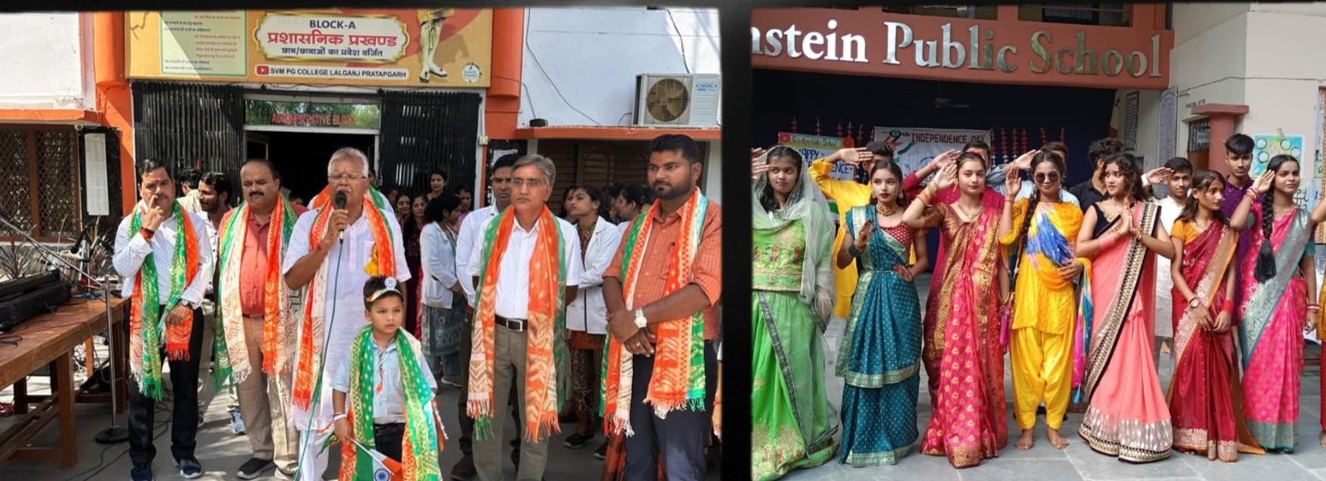 PRATAPGARH NEWS: स्वतत्रंता दिवस की उन्यासवी वर्षगांठ पर यहां सरकारी संस्थानों तथा शिक्षण संस्थानों में धूमधाम से ध्वजारोहरण एवं सांस्कृतिक कार्यक्रमों की प्रस्तुतियां हुई दिखी। सिविल न्यायालय में अपर मुख्य न्यायिक मजिस्ट्रेट विराट मणि त्रिपाठी ने समारोहपूर्वक ध्वजारोहण किया। कार्यक्रम की अध्यक्षता सिविल जज  डॉ0 के मल्लिकार्जुन ने किया। वही तहसील में एसडीएम शैलेन्द्र वर्मा ने समारोहपूर्वक ध्वजारोहण किया । यहां कार्यक्रम की अध्यक्षता संयुक्त अधिवक्ता संघ के अध्यक्ष अनिल त्रिपाठी महेश व संचालन लेखपाल संघ के मंत्री मो0 अकरम ने किया। कार्यक्रम में सुरेश यादव, रामबिहारी मिश्र, धर्मराज, अधिवक्ता अनूप पाण्डेय, अबरार अहमद ने राष्ट्रीय एकता पर मनमोहक गीत प्रस्तुत किया। कार्यक्रम का संयोजन नायब तहसीलदार पंकज कुमार व लेखपाल संघ अध्यक्ष केके सरोज ने संयुक्त रूप से किया। सीओ कार्यालय में पुलिस उपाधीक्षक आशुतोष कुमार, वन विभाग में वन क्षेत्राधिकारी एसपी मिश्रा, ब्लाक मुख्यालय पर प्रमुख इं0 अमित प्रताप सिंह पंकज ने ध्वजारोहण किया। नगर पंचायत कार्यालय भवन पर चेयरपर्सन अनीता द्विवेदी ने ध्वजारोहण किया। यहां चेयरपर्सन प्रतिनिधि संतोष द्विवेदी व ईओ इंद्र प्रताप ने स्वाधीनता दिवस पर स्वच्छता कर्मियोें को माल्यार्पण कर सम्मानित किया।  इंदिरा चौक पर व्यापार मंडल द्वारा ध्वजारोहण का भव्य कार्यक्रम हुआ। उद्योग व्यापार मंडल अध्यक्ष उदय शंकर दुबे व संरक्षक डॉ0 रमाशंकर शुक्ल ने ध्वजारोहण किया। कार्यक्रम में चेयरपर्सन अनीता द्विवेदी , संतोष द्विवेदी, अनिल महेश विशिष्ट अतिथि रहे। संचालन अधिवक्ता ज्ञान प्रकाश शुक्ल ने किया। बहुगुणा पीजी कालेज में प्राचार्य प्रो0 डॉ0 ऋचा सुकुमार, एसवीएम विज्ञान एवं प्रौद्योगिकी महाविद्यालय में  प्रदेश के पूर्व कैबिनेट मंत्री प्रो0 शिवाकांत ओझा ने ध्वजारोहण किया। कार्यक्रम का संयोजन प्राचार्य डॉ0 अमित सिंह ने किया। सरस्वती विद्या मंदिर इंटर कालेज में निदेशक आचार्य  राम अवधेश मिश्र , राम अंजोर मिश्र इंटर कालेज प्रधानाचार्य सुनील शुक्ल , अवधेश विद्या निकेतन इंटर कालेज में प्रधानाचार्य सुरेश सिंह , चिल्ड्रेन पैराडाइज स्कूल में प्रधानाचार्य आदर्श मिश्र ने ध्वजारोहण किया। अझारा में भागवत समग्र विकास समिति एवं तारा देवी एजुकेशनल एण्ड वेलफेयर ट्रस्ट के तत्वावधान में स्वतत्रंता दिवस समारोह धूम-धाम से मनाया गया। यहां मुख्य अतिथि पूर्व प्राचार्य डॉ0 शिवमूर्ति शास्त्री, समाजसेवी शेष नारायण त्रिपाठी, प्रबंधक सुनीता मिश्रा व समाजसेवी प्रकाश चंद्र मिश्र के संयोजन में ध्वजारोहण कार्यक्रम सोल्लास मनाया गया। धधुआगाजन स्थिति आइंस्टीन पब्ल