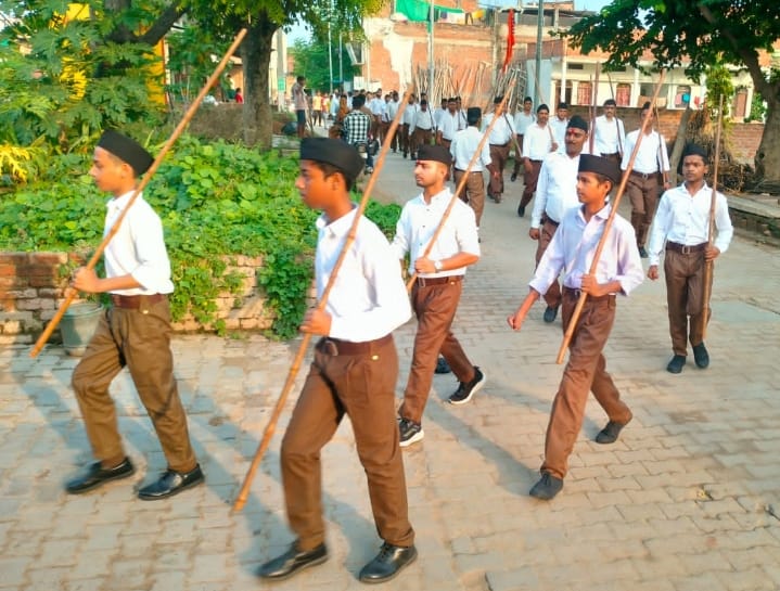 आरएसएस की स्थापना के 100 वर्ष पूरे होने के उपलक्ष्य में किया पथ संचलन