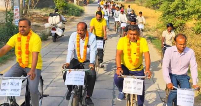 पर्यावरण संरक्षण और स्वास्थ्य जागरूकता के लिए भदोही साइकिलिंग क्लब द्वारा निकाली गई विशाल साइकिल यात्रा